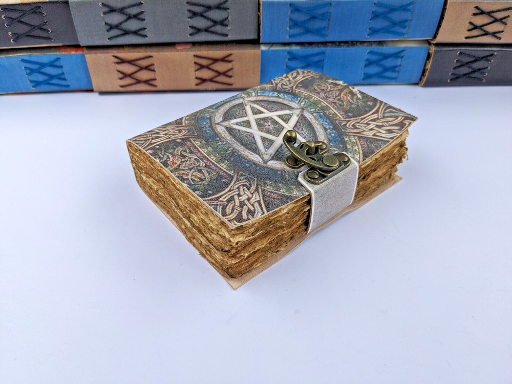 This vintage leather-bound journal is a unique addition to any collection. The antique handmade paper notebook diary sketchbook has been crafted with care in India by DIVYA VINTAGE CRAFT. The journal is a perfect blank diary for personal use, with 1 unit quantity available. The cover material is made of high-quality leather, giving it a sleek and sophisticated look. The journal is perfect for those who appreciate vintage paperback books. It is an ideal choice for keeping track of important dates, jotting down notes, or simply as a decorative piece. This journal is a must-have for anyone who values vintage items and wants to add a touch of history to their collection. * Cover - Leather * Closure - Brass Lock * Pages -200 * Size -7x5 * Pages - 100% Handmade Unique Antique Deckle Edge Papers