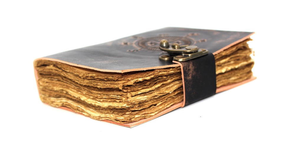This vintage leather-bound journal is a unique and handmade piece that is perfect for anyone who loves antique paperwork. The journal has been crafted with care in India and features a beautiful leather cover that is sure to impress. The journal is perfect for keeping track of important dates, sketches, or any other information that you might need to remember. It is a one-of-a-kind item that is sure to make a great addition to any collection. * Cover - Leather * Closure - Brass Lock * Pages -200 * Size -7x5 * Pages - 100% Handmade Unique Antique Deckle Edge Papers