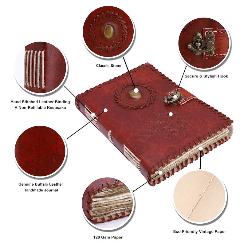 This vintage leather bound journal is a one-of-a-kind piece of craftsmanship that is perfect for anyone who loves to write, draw or sketch. The journal is made from high-quality leather and features antique handmade paper that gives it a unique and authentic feel. This journal is perfect for use as a planner, diary, notebook or sketchbook. With its ample size and sturdy construction, it is sure to become a cherished item for years to come. So, whether you are looking for a gift for a friend or loved one, or just want to treat yourself to something special, this vintage leather bound journal is the perfect choice. ✦ Leather – Soft Supple Genuine Leather with Best Quality ✦ Soft Natural Handmade Leather Cover ✦ Lock - Best Quality Lock ✦ Color - Dark Brown ✦ Paper - Handmade Antique Paper ✦ Size - Custom (in inches) ✦ Pages - 200 Pages Both Size