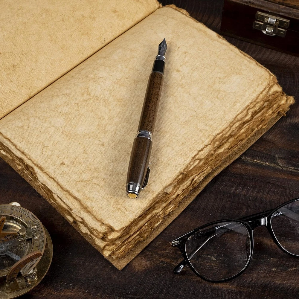 Made In India 7x5 inch A5 paper 200 both side Vintage Leather bound Journal The Vintage Leather bound Journal by Divya Vintage Craft is a unique and antique notebook perfect for sketching and writing. Handmade in India, this leather-bound journal features 200 pages on both sides, making it a durable and versatile option for keeping thoughts and ideas organized. The personalized and signed aspect adds a touch of exclusivity, while the vintage paperback design adds a timeless charm to this 7x5 inch diary. Ideal for those looking for a rustic and authentic writing experience.