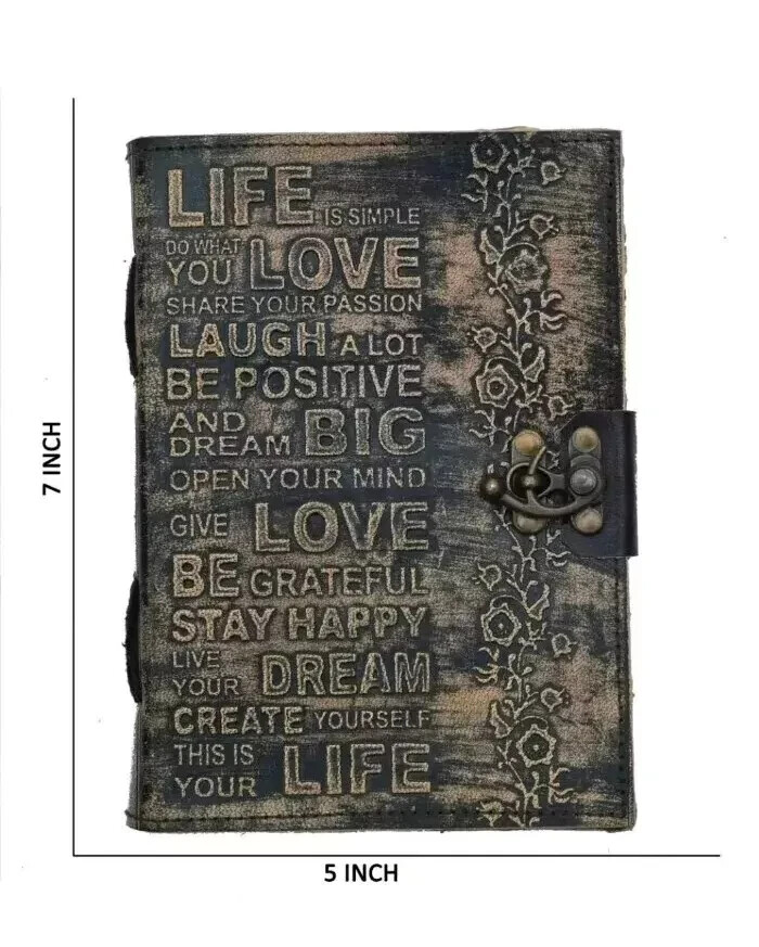 If you're looking for a quality leather journal crafted to last or a perfect gift for that special someone, you've hit the jackpot! Every journal we make is custom made to order and crafted with genuine full grain leather our exquisite Leather Journal Diaries with Deckle Edge Vintage Paper and complete with stunning designs on the cover Each diary is expertly handcrafted using high-quality leather, ensuring durability and longevity. Shree Handcrafts journals feature deckle edge vintage paper. ✦ Manufacturer : Swati Art & Design ✦ Leather – Best Quality Genuine Leather ✦ Soft Natural Handmade Leather Cover ✦ Bronze lock closure ✦ Color – Distressed Brown ✦ Paper - Handmade Vintage/Antique Deckle Edge Paper ✦ Size - 7 x 5 Inches ✦ Pages - 200 Pages both side ✦ Material -- Leather Cover, Handmade Plain Paper, leather strap lock closer ✦Care Instructions: Wipe clean with a dry cloth. ✦ Antique Paper - Vintage Journal is made of unique vintage paper which looks like it was pulled from history. You will love the old looking handmade cotton paper. which is unique to our vintage journals. ✦ Sturdy Binding, Leather Wraparound And Key - Sturdy hand stitched binding to make sure that no paper comes out loose. The leather wraparound with a cute key that slips in will make sure that the papers inside the journal are safe and secure. ✦ Sketchbook is great for keeping by the bedside to jot down dreams, or for use as a diary or journal. ✦ It is a truly unique and wonderful gift for a friend, the men, women, and wiccans in your life! or to treat yourself to as a special keepsake ✦ our journals are influenced by symbolism that is derived from the Wicca/Pagan community, creating a personalized space where your inner creative genius can flourish. ✦ The paper is made from sustainable cotton and jute canvas. The paper is acid-free and pH neutral therefore is a timeless piece of art. ✦ Use Any Kind Of Pen - Sketch, Doodle, Write on your journal notebook with a Calligraphy Pen Fountain Pen, Brush Pen, Ball Pen, Acrylic Colors, Watercolor and many more. ✦ Shipping Policy :- Orders will be dispatched from our location in India within one to Two working day once the payment is cleared. Although, we make every effort to ship the items within one day. # Free Shipping for all world and fast shipping # FAST SHIPPING-I WILL SHIP NEXT WORKING DAY BY ( USPS ,DHL EXPRESS AND INDIA POST ) ✦Approximate delivery time for economy service :- ✦ UK, USA & Singapore : 8 - 15 days ✦ Europe : 10 - 20 days ✦ Rest of World : 15 - 30 days ✦ Timelines mentioned are working days based on the recent feedback from our buyers and not guaranteed. Delivery times vary during peak periods