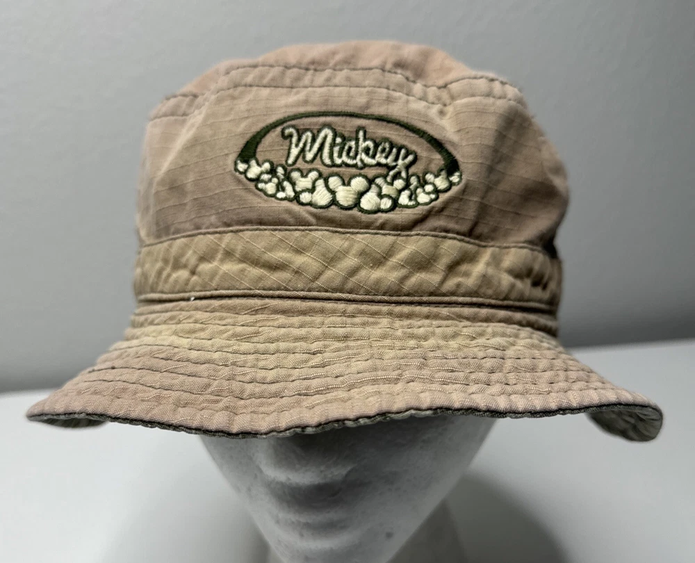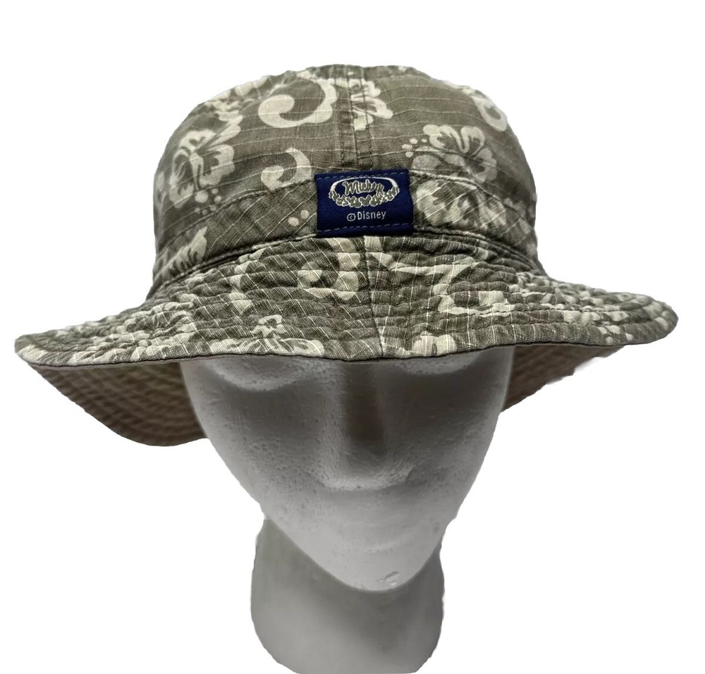 This vintage Mickey Disney World reversible bucket floral hat cap is the perfect addition to any Disneyana collection. Show off your love for all things Disney with this stylish accessory. Made for both men and women, this hat comes in size S/M and features a fun Hawaiian design that is sure to turn heads. Excellent condition with signs of mild wear.