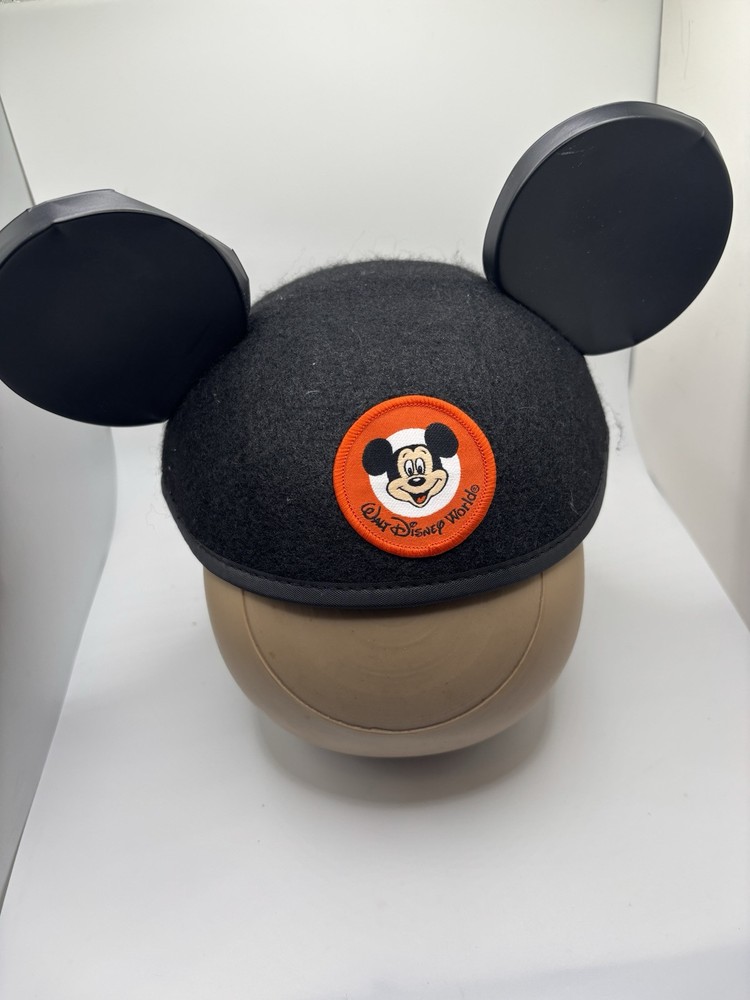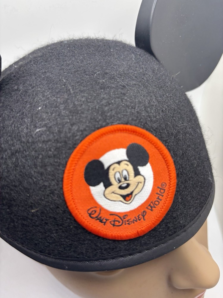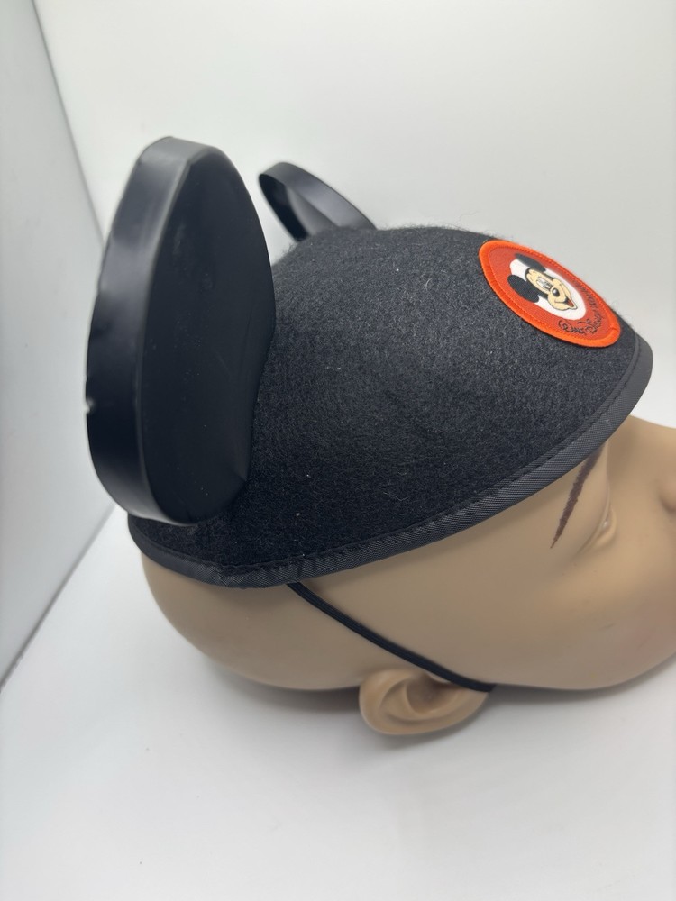 This vintage Mickey Mouse Ears headband features a classic design with black felt and plastic ears, representing the iconic Disney character Mickey Mouse. Manufactured in 1991 in Thailand for Walt Disney World, this one-size accessory is suitable for infants and is part of the Disney franchise. The headband is a collectible piece of Disneyana, perfect for fans of Mickey Mouse looking to add a nostalgic touch to their apparel and accessories collection from the 1990s.