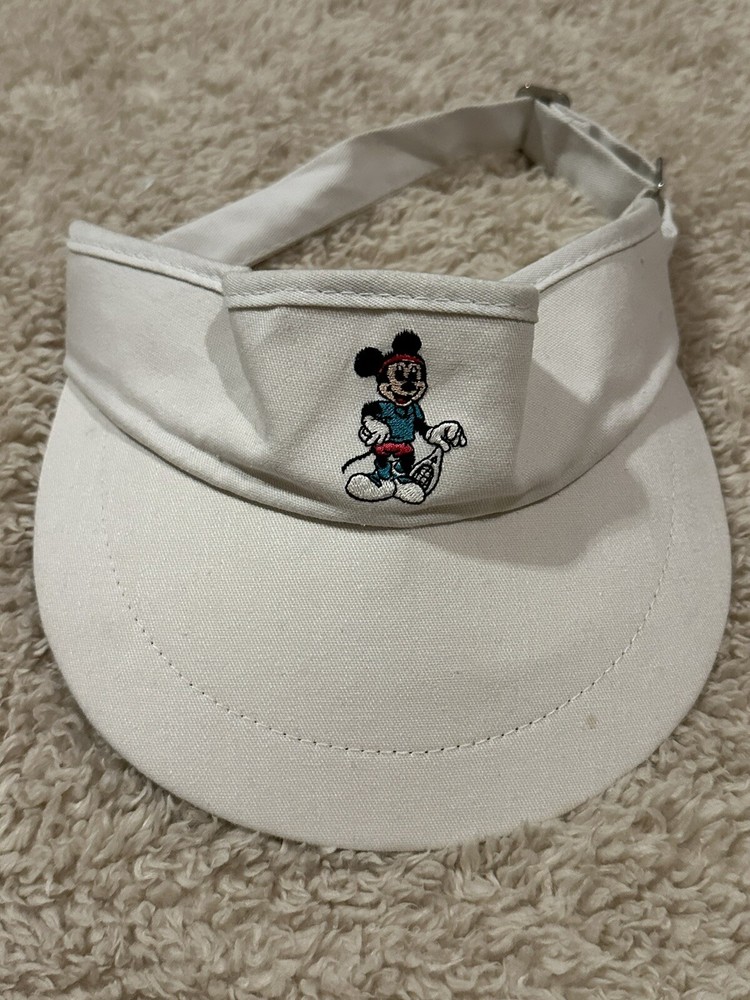 Vintage Mickey Mouse Walt Disney World Tennis Sun Visor Cap Hat White...
