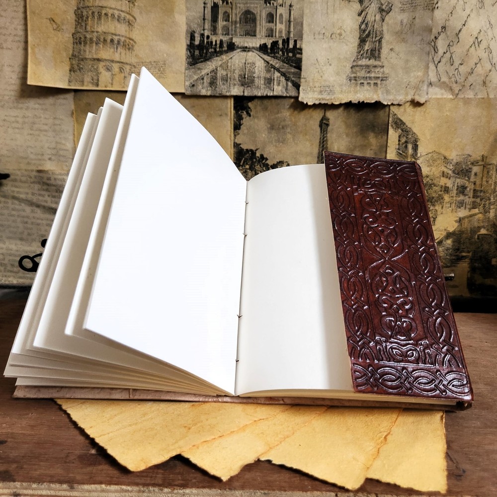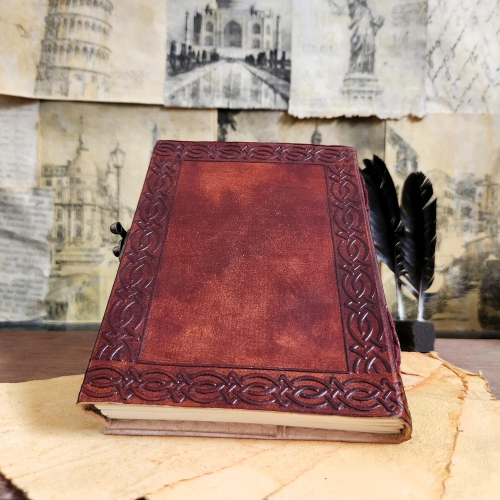 Vintage Personalized Gift Leather Journal Dairy Notebook Journal 200 Pages Original Leather Journal for Men (7 x 5 inch) Description There is nothing quite as beautiful and stylish as a handmade leather journal. Our journals are handmade in the Rajasthan area of India, where leatherwork has been a traditional handicraft for centuries. Local artisans work together in co-operatives using age-old techniques and hand tools to apply love and skill to cutting, stitching, and embossing these beautiful pieces of stationery. Every item is made by hand, so you know your notebook will be one of a kind. A perfect writing companion travelling companion no matter where your destination is. We believe in making products that make the world a better place. All our products are ethically sourced and the paper is tree- free so no negative impact on India's forest reIn Rajasthan, India, the cultural art of leather craft and tooling is inherited through the generations. With a set of hand tools, each artisan applies love and skill to cutting, stitching, embossing and embroidering our leather journals. Being hand-made from 100% natural leather, our journals can vary in look & shade, producing a unique item, no two are quite the same.sources. The thick quality paper which has a natural fibre variation is hand-crafted from recycled cotton which is acid free & tree free. The leather is tanned using a vegetable tanning method, which protects the environment and tannery workers from toxic chemicals. Artisans then use water-based dyes or oils to colour the leather. Beautiful and unique, these handmade leather journals make a perfect gift. Whether it’s a gift for a loved one or a treat for yourself we know our products make a lasting impression. Gift a meaningful present that will inspire as well as show you care. Features: BEAUTIFULLY CRAFTED: Our handmade artisan leatherbound spellbook grimoire journals are crafted from genuine leather. The brown colouring gives it a beautiful antique vintage feel. Being hand-made from natural leather the journals can vary in look, making it unique. The cover features a beautiful gold embellishment, with hand embossed pattens by highly skilled artisans. QUALITY PAPER: Inside this 1 inch thick leather bound book of spells journal you will discover 200 pages (100 sheets) of thick blank off-white plain paper. With no bleed through the125gsm natural fibre paper makes this a lovely blank book to draw, sketch, or write in. PERFECT FOR GIVING: Suitable for both men or women to write in, this locking diary daily travelers notebook is perfect for an avid writer, or Harry Potter fan looking for a magic spell book. Ideal to give as a birthday gift, valentines, graduation or wedding anniversary present. MANY USES: At 15 x 20 12 x 17 centimetres, this close to A5 sized personal notebook is perfect to use as a pregnancy or fitness journal, sketch book, or poetry journal. For planners and journaling any subject, Its ideal to write in and record your daily thoughts and life lists. OUR PROMISE: We are positive you will love our products, but if you don't for any quality reason, we will replace or refund for up to 30 days after purchase. Our friendly customer service team are always available to answer any questions you might have. Product Details: Brand: Finun-Lthr Color: Brown Theme: Book Sheet Size: A5 Pages: 220 Cover Material: Leather Style: Unique Vintage Ruling Type: Plain Special Feature: Lock Product Dimensions: 7"L x 5"W x 1"Th Manufacturer: Alina Brand: Finun-Lthr Item Weight: 1.76 pounds Product Dimensions: 5 x 1.2 x 7 inches Item model number: 4123658 Color: Brown Cover Material: Leather Material Type: Leather Number of Items: 1 Size: 7 x 5 inch Ruling: Plain Sheet Size: A5 Manufacturer Part Number: 4123658 Date First Available: February 21, 2022 Handling We will ship all orders within 3 business day of payment. Delivery We Do Not Ship Outside of the Continental US. Return Policy All items qualify for returns within 30 days of receipt. Buyer is responsible for return shipping on any item that is not damaged. Feedback We take our reputation seriously, we buy and sell online, so we understand the value of trust. If you are unsatisfied with your order, please contact us and we will work with you to resolve it to your satisfaction.