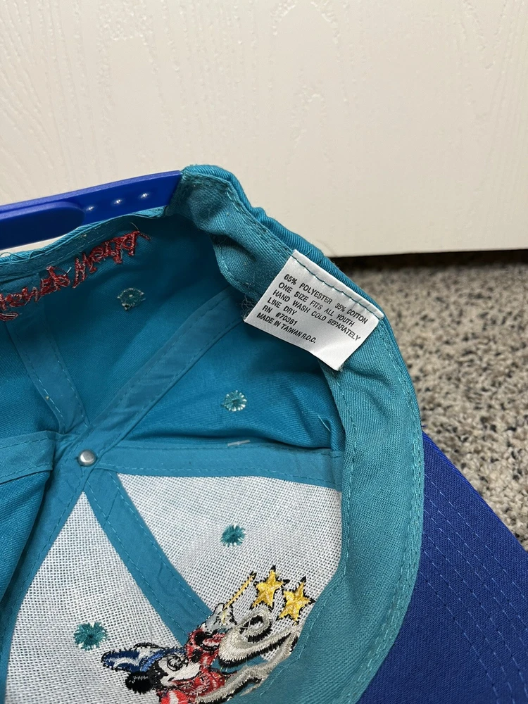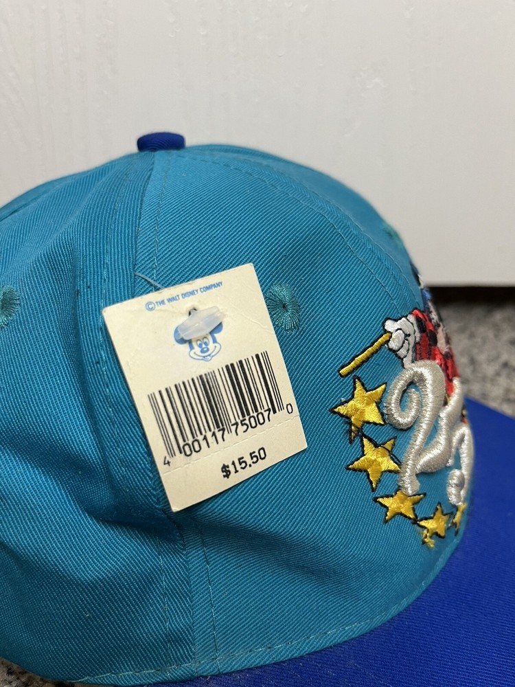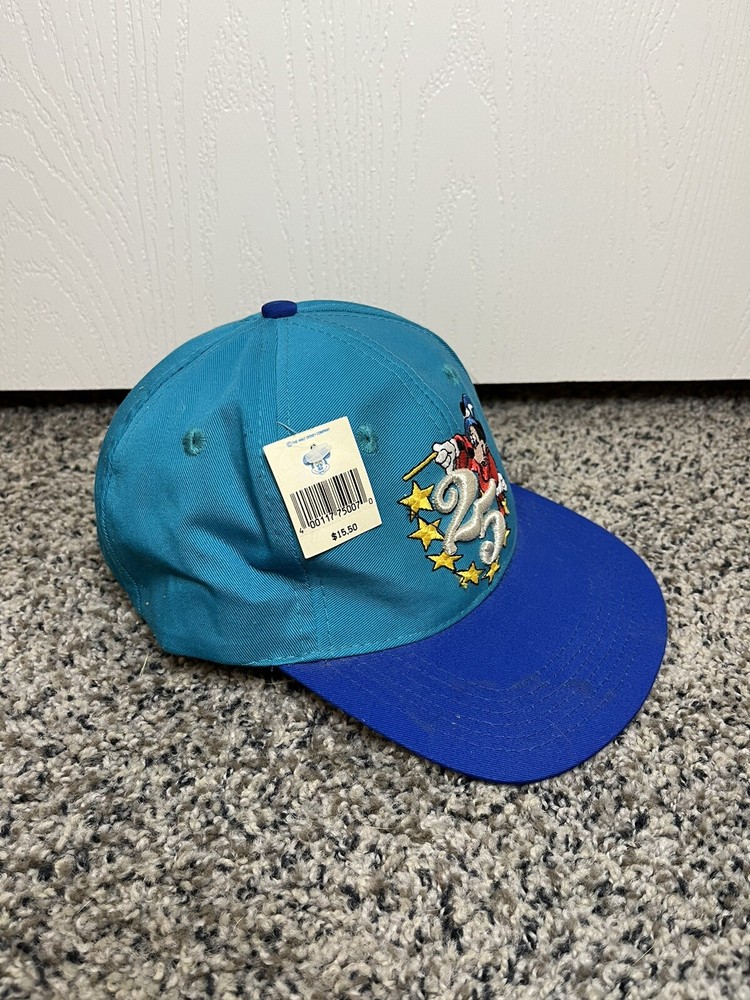 Celebrate the 25th anniversary of Walt Disney World with this vintage original tag youth Mickey Mouse hat. The vibrant blue color and iconic character make it a perfect addition to any Disney fan's collection. Made by Mickey Inc in Taiwan, this unisex hat is suitable for youth and features the beloved Disney franchise. The hat is a contemporary piece from 1968 and is listed in the collectibles and Disneyana categories. It's not just an accessory, but a piece of history that captures the magic of Disney. Get your hands on this limited edition piece before it's too late.