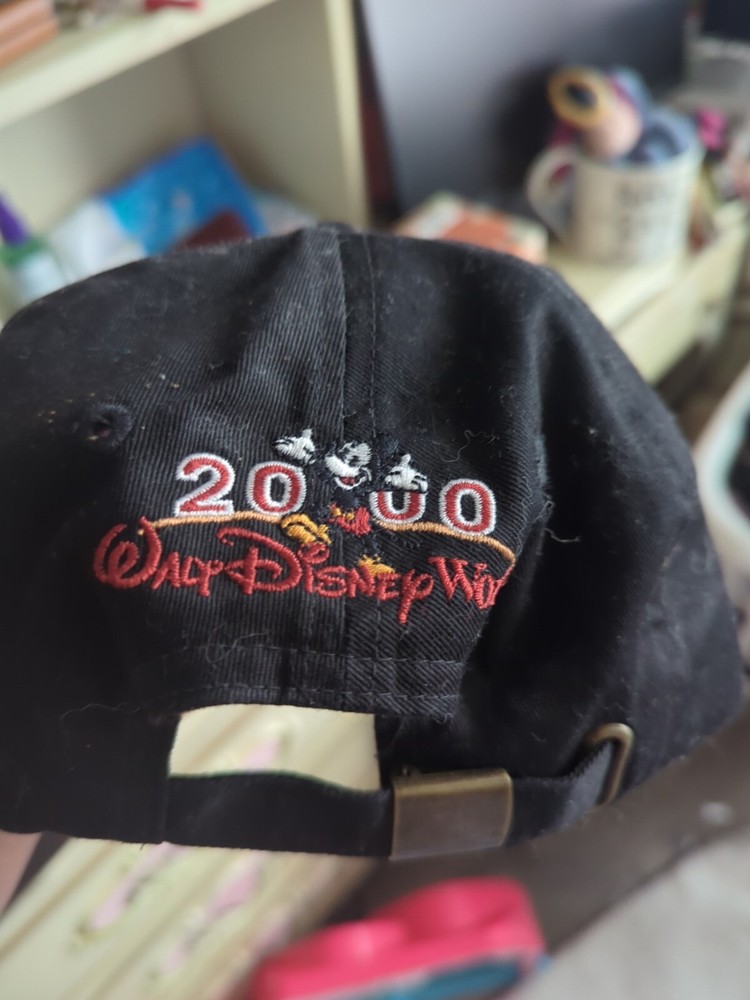 This vintage Walt Disney World baseball cap is a must-have for any Disney fan. The cap features a solid black color with a gold Mickey Mouse logo on the front. The strapback design allows for an adjustable fit, making it a great unisex accessory for casual occasions. Made from cotton knit fabric, this cap is perfect for all seasons and occasions. It is a great addition to any collection and is sure to bring back memories of classic Disney moments. This Disney Vintage cap is a rare find and is perfect for those who appreciate the iconic brand. Like new condition. I don't think this was even worn