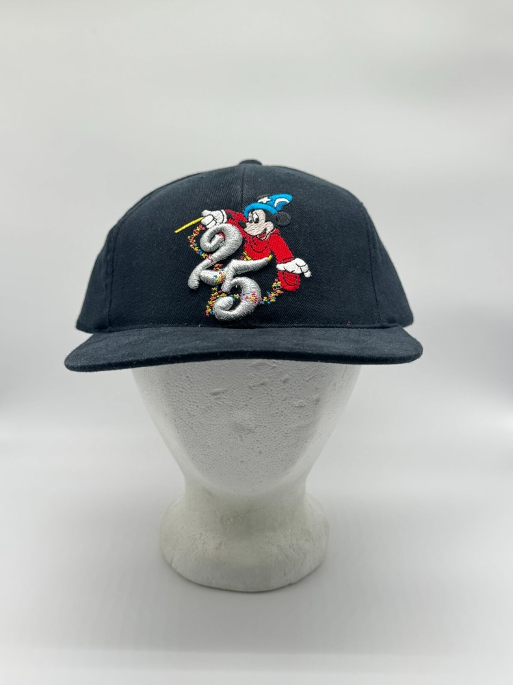 Vintage Walt Disney World 25 Years DEADSTOCK Snapback Hat Mickey Fantasia Black This is in deadstock new condition with the original tag. For a size reference, I'm a 7 1/2 fitted hat and this fit great on the 2nd to last snap. Please review the images for the best description detail as this is the item you'll receive. Feel free to reach out with any questions or requests for additional images. I'm more than happy to help! Thanks for looking Check out my other listings! I'm more than happy to bundle and find shipping savings when possible