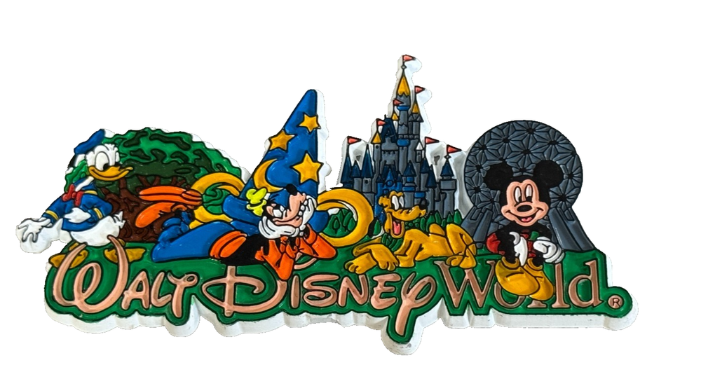 Vintage Walt Disney World 4 Park Icons Sorcerer Hat Mickey Goofy Donald Magnet All Disney items listed are from my personal collection, acquired over the years from Disney parks and official stores. I’m currently in the process of downsizing my collection.