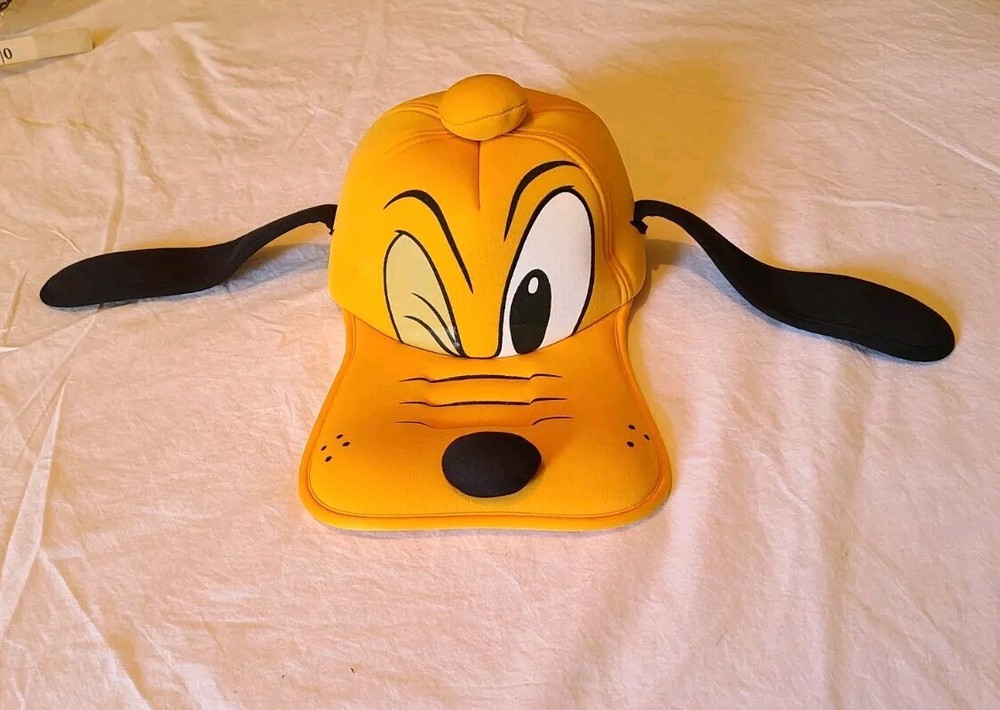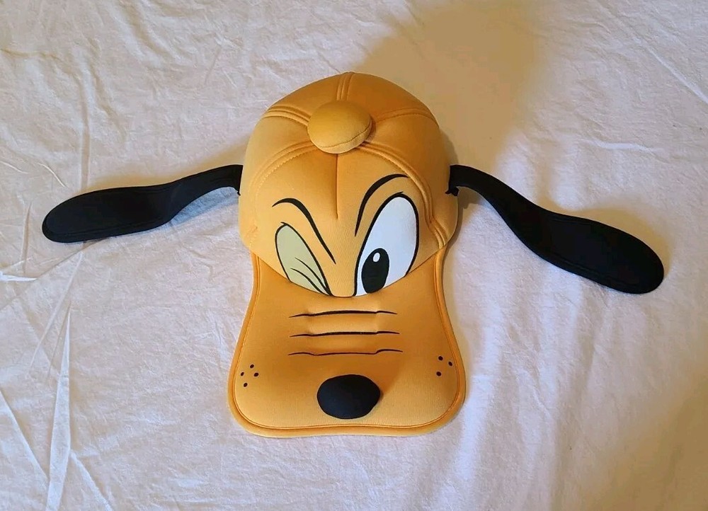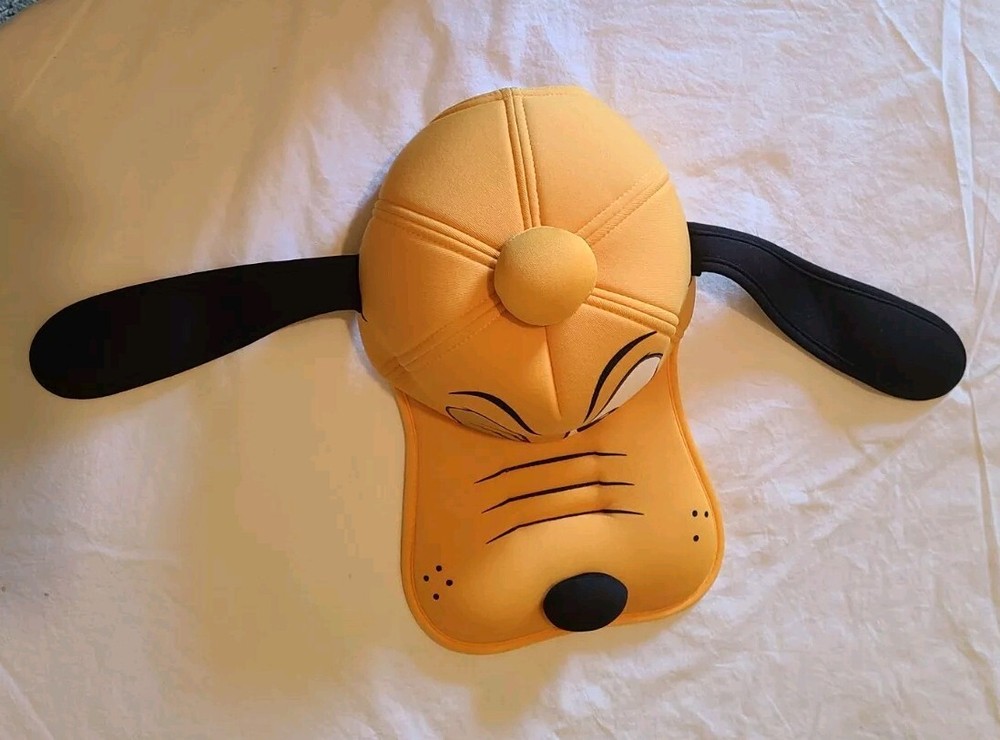 This vintage Walt Disney World Pluto hat is a must-have for any Disney fan. The hat features a 3D design of Pluto with a stretch back for a comfortable fit and is a great way to show off your love for Disney and its iconic characters. Hat stretches to fit any adult head, bill measures 5" and ears are 8" long. Excellent pre-owned condition.