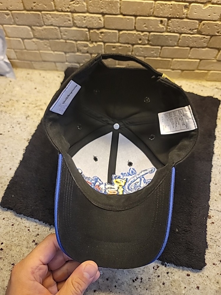 This vintage Walt Disney World baseball hat is a must-have for any Disney fan. The black hat features an embroidered design of the iconic Mickey Mouse, making it a stylish addition to any outfit. It is suitable for adults of any gender, with a one-size-fits-all design. The hat is made in Taiwan and is an officially licensed Disney product. It is perfect for collecting or for everyday wear. Add this unique piece to your Disneyana collection today! CLEAN