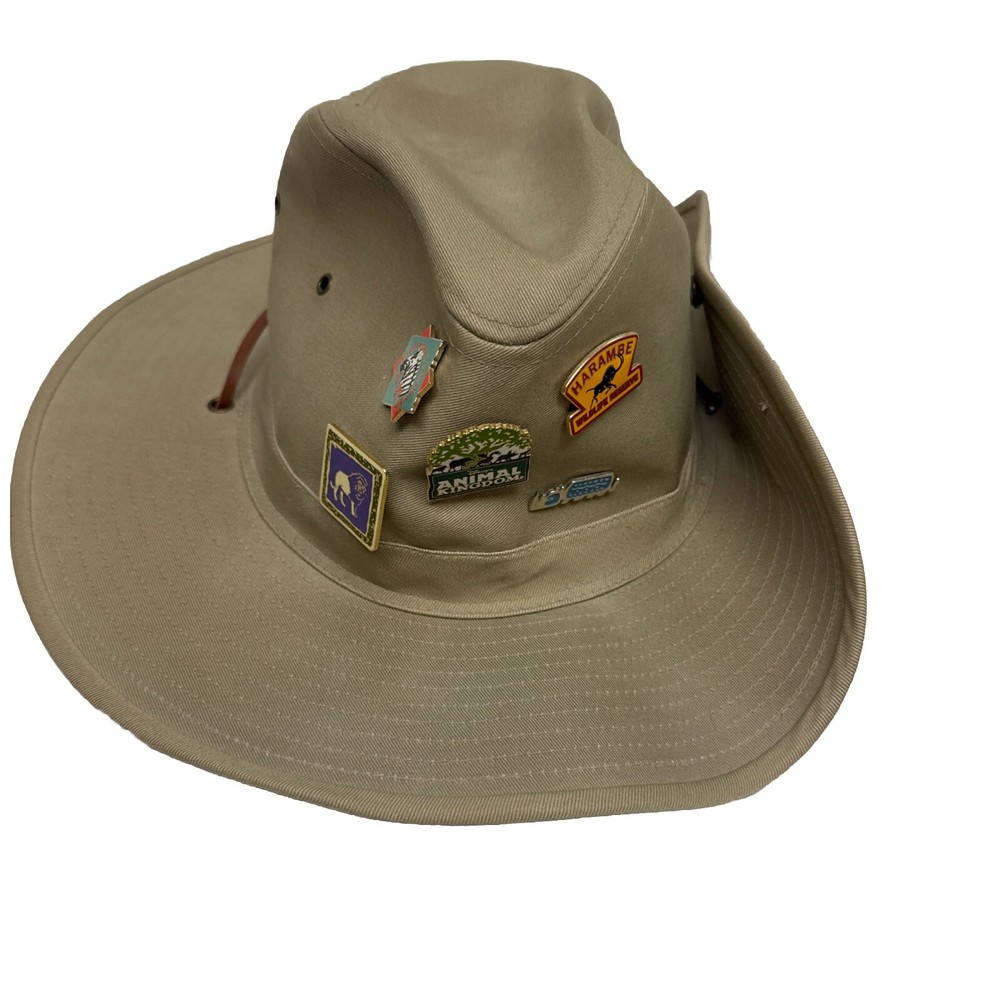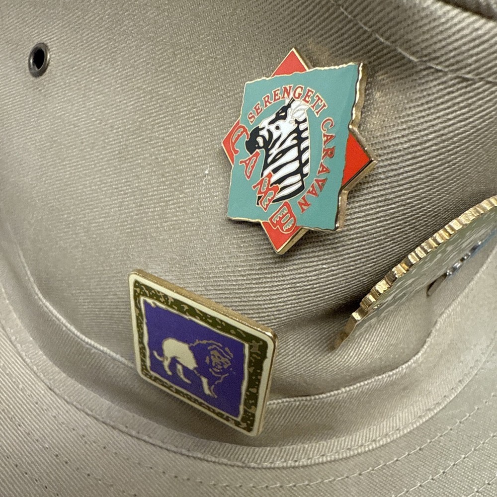 This hat is even better than expected! The pins are so charming and it fits perfectly. Amazing quality for its age - barely shows any wear at all.