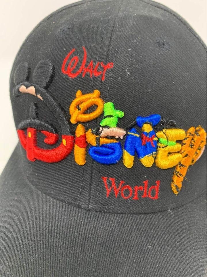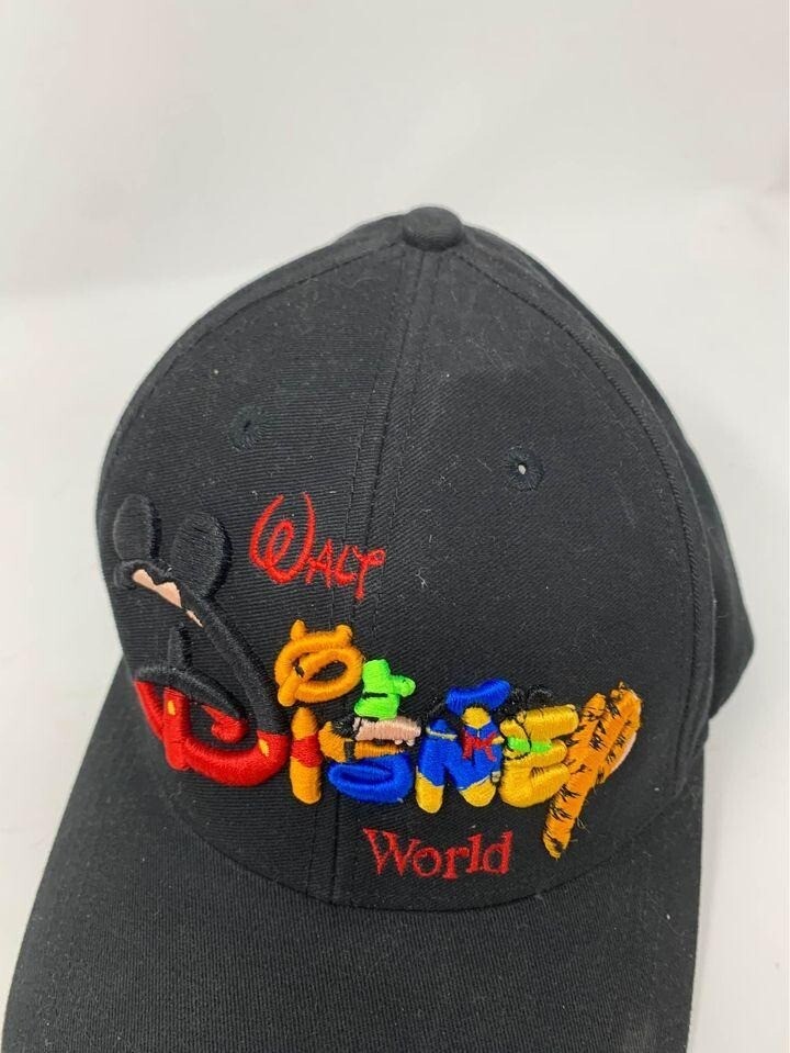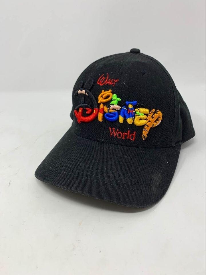 Vintage Walt Disney World Black Embroidered Snapback Baseball Cap Hat 100% Cotton. Overall in good shape for its age, some light wear as shown in photos.