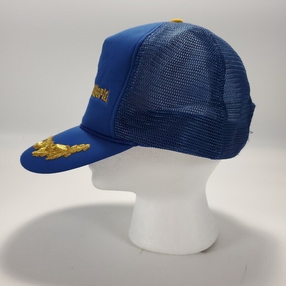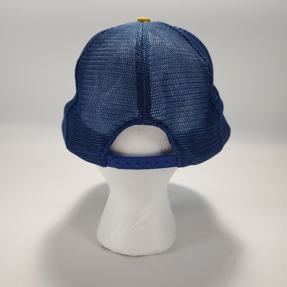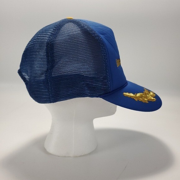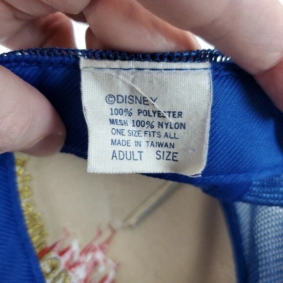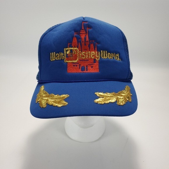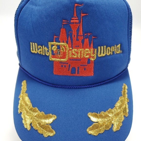 Vintage Walt Disney World Blue Snapback Trucker Style Hat - One size Features: - Blue fabric front and bill with blue mesh back - Snapback adjustment strap - Walt Disney World text and castle logo embroidered on front - Laurel design embroidered on top of bill In great condition.