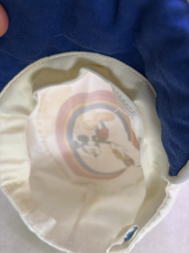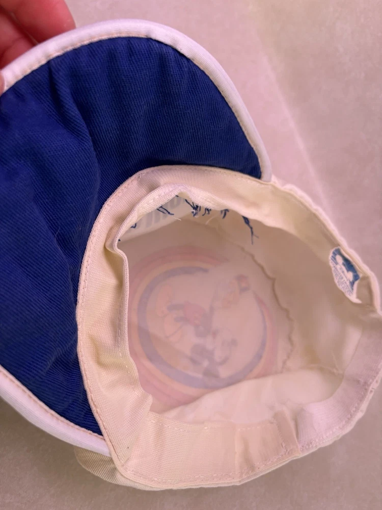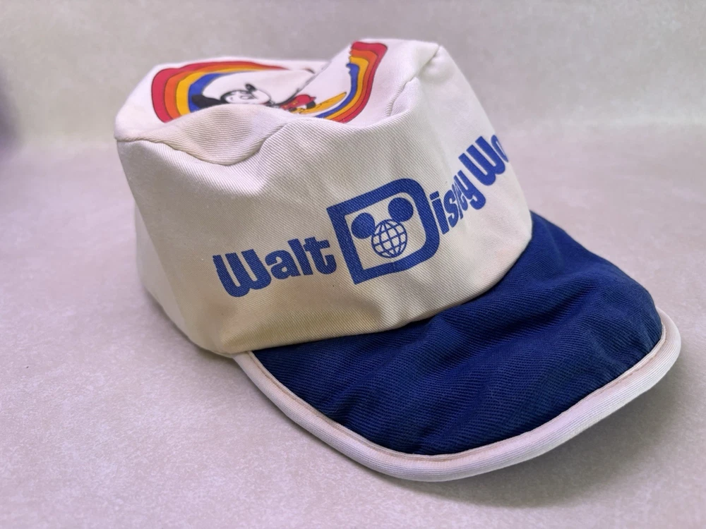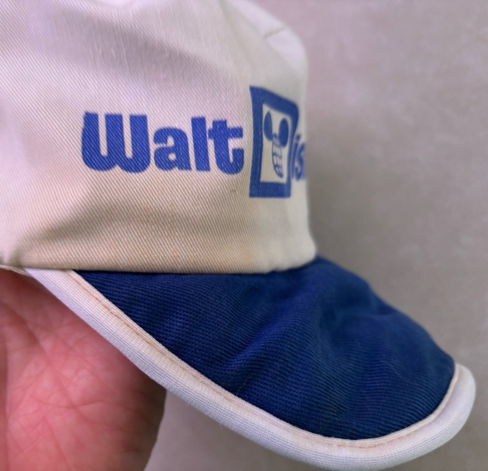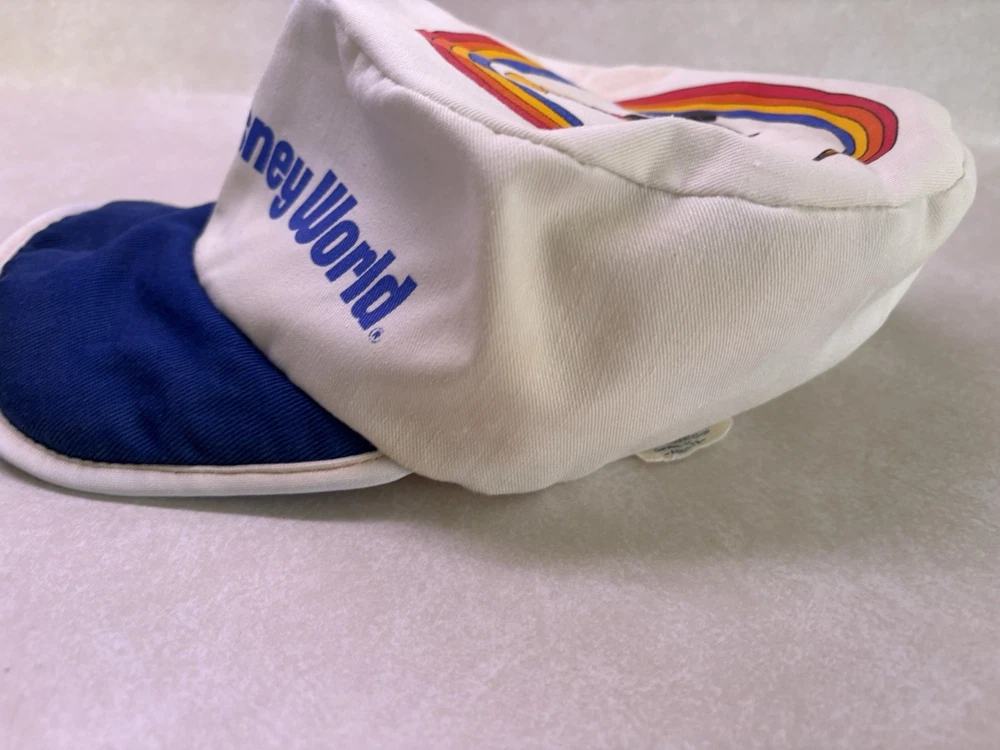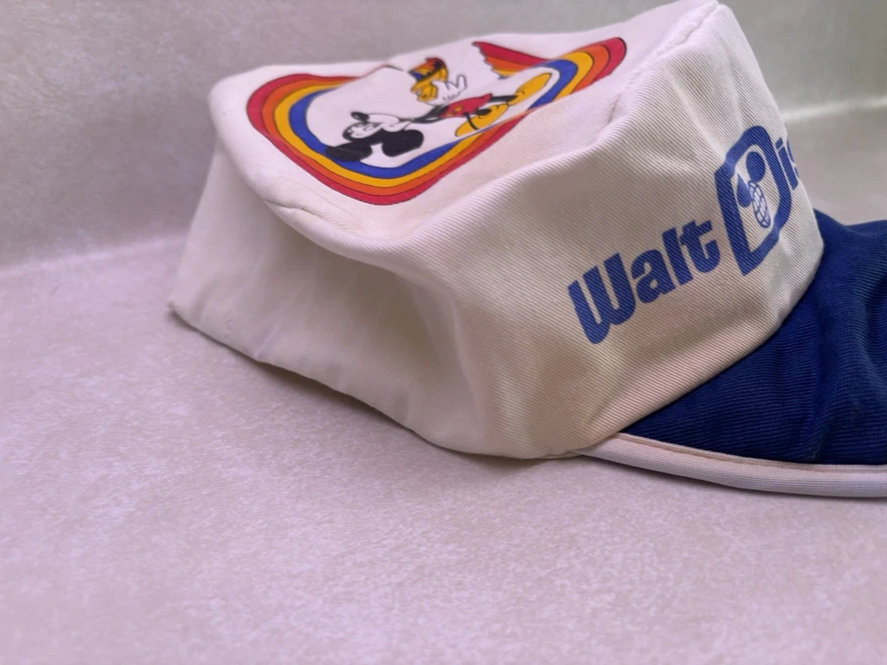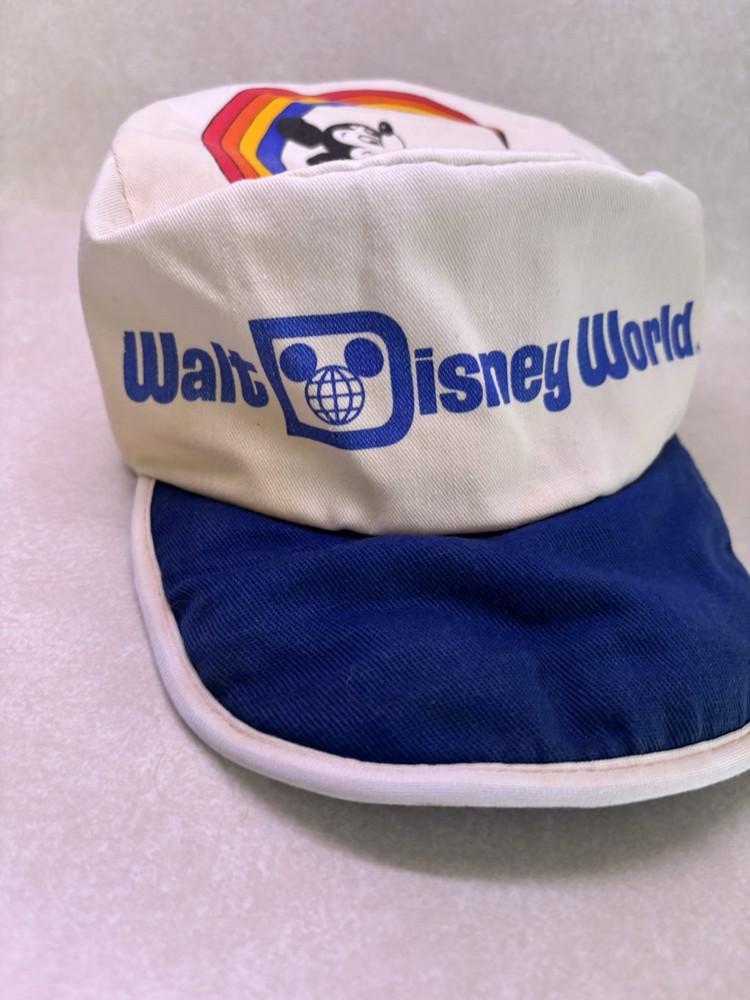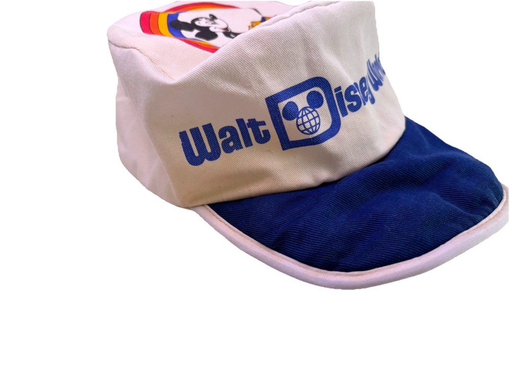 Show off your love for Disney with this vintage Walt Disney World Character Fashions painters cap. The cap features Mickey and Minnie Mouse and is perfect for any Disney fan. The white cap is made in the United States and is suitable for unisex adults. This collectible item is perfect for those who love Disneyana and want to add to their collection. The cap is a great accessory for any Disney convention or event. Don't miss out on the chance to own this piece of Disney history. Bill is worn and stained on side