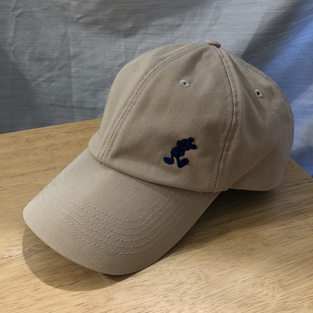 Vintage Walt Disney World Disney Parks Hat Cap Tan Navy Blue Silhouette Mickey.