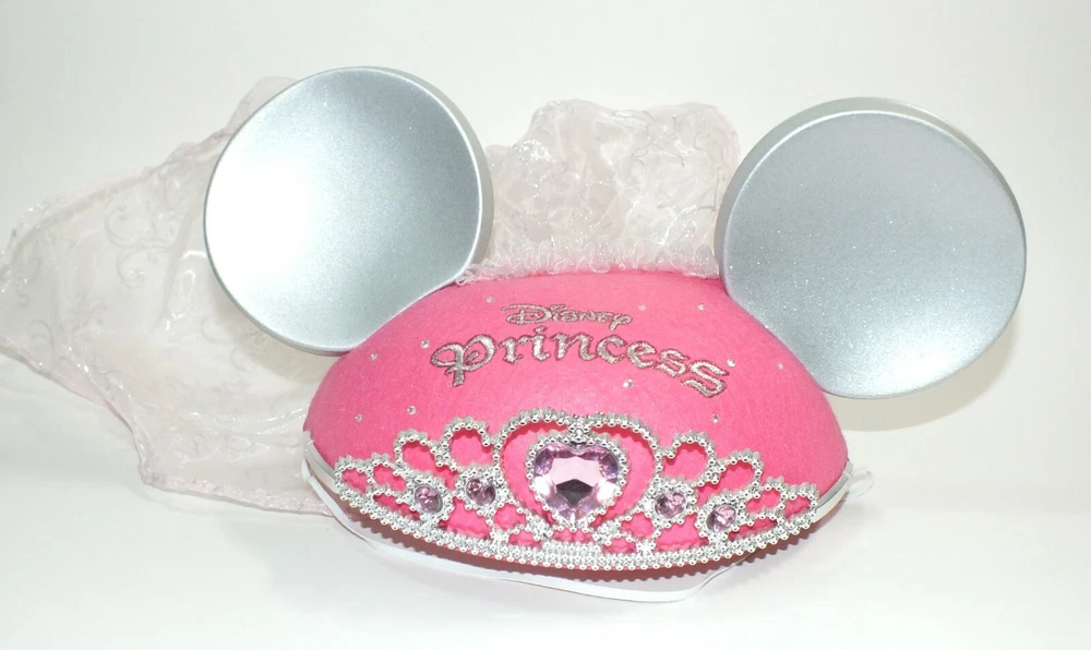 Vintage Walt Disney World Disney Princess Mickey Ears Hat Pin Tiara Fabric Veil Walt Disney World Mickey ears, bought early 2000's, never worn. Size is the standard size for mouse ears, "one size fits most". Shipping and handling is USPS ground advantage with delivery confirmation.