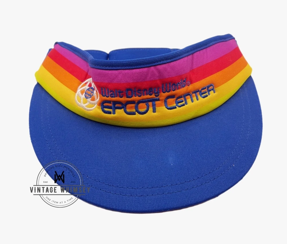 Item: Vintage Visor Cap Description: Features rainbow theme for WDW Condition: Used Year: 1980’s Defects: slight discoloration SKU Number: Unknown Factory Sealed: No