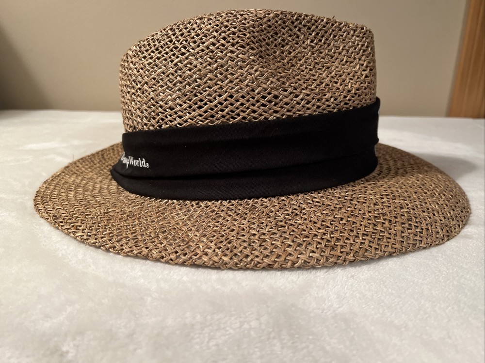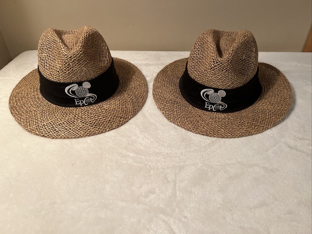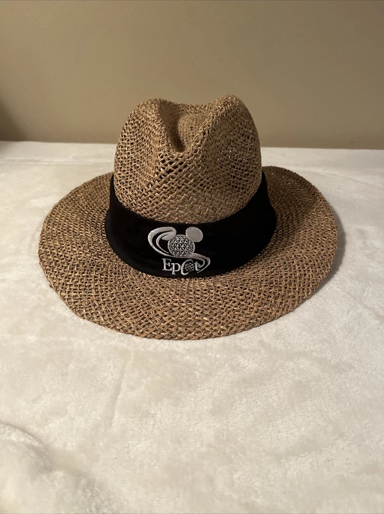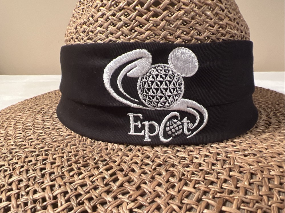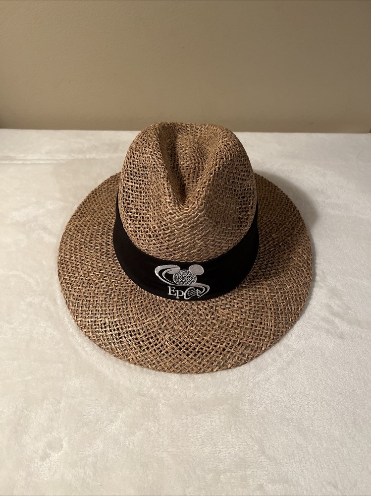 Vintage Walt Disney World EPCOT Natural Straw Golf Hat One Size. Vintage Walt Disney World EPCOT Natural Straw Golf Hat One Size. Hats are in excellent condition! No cosmetic damage from past use or storage. Band is black with embroidered emblem on it.