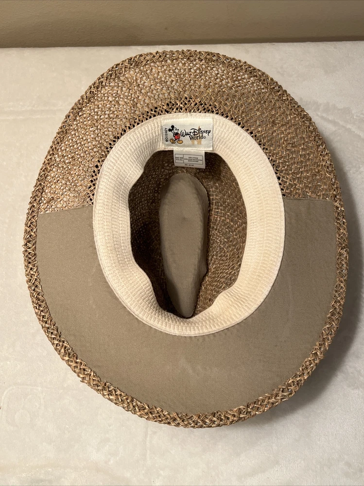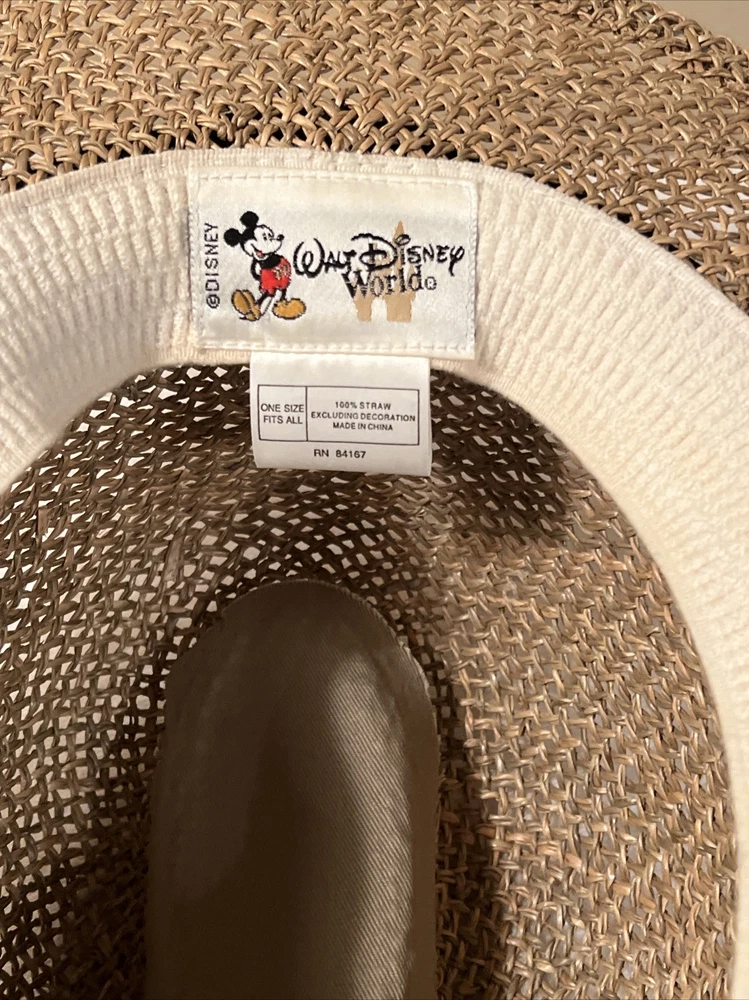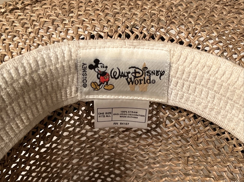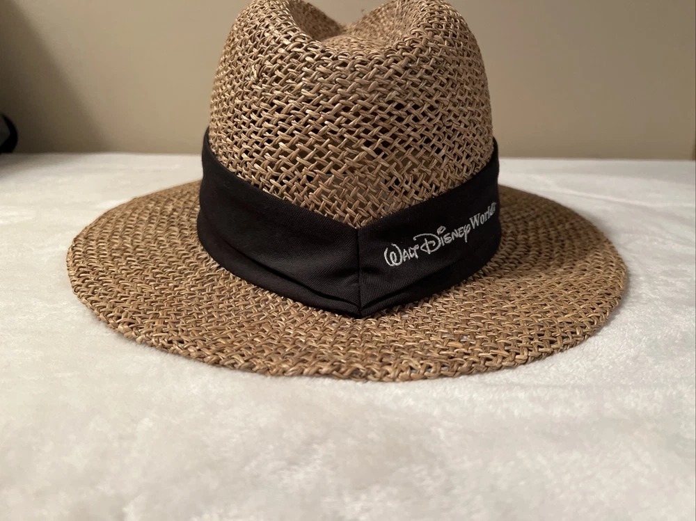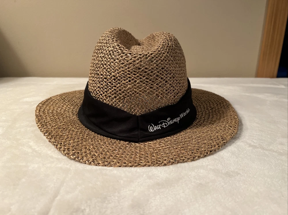 Vintage Walt Disney World EPCOT Natural Straw Golf Hat One Size. Vintage Walt Disney World EPCOT Natural Straw Golf Hat One Size. Hats are in excellent condition! No cosmetic damage from past use or storage. Band is black with embroidered emblem on it.