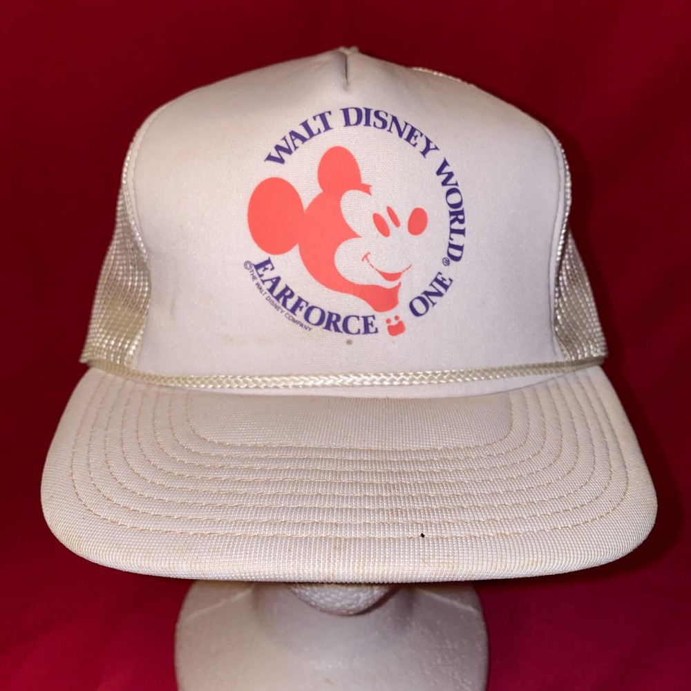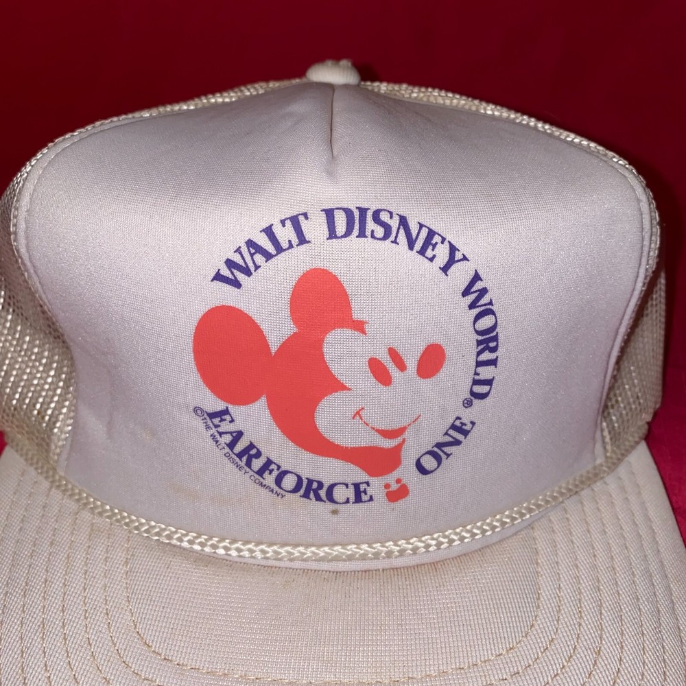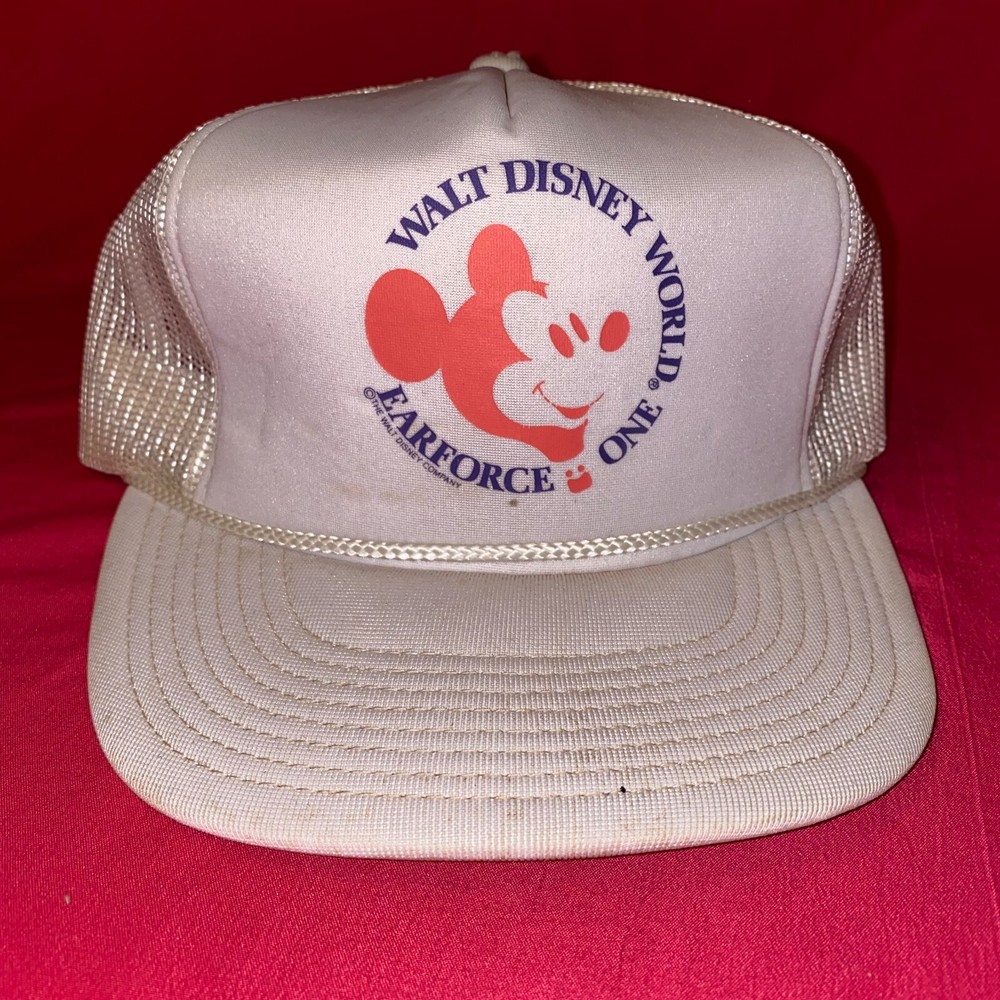 This is a Vintage Walt Disney World Earforce One Trucker Style Snapback Hat. The hat is in used condition and does have some stains on it. Please look at all the photos to see condition. Shipping is $6.00 in the USA. We do ship World Wide. If you have any questions please feel free to ask. Thank you.