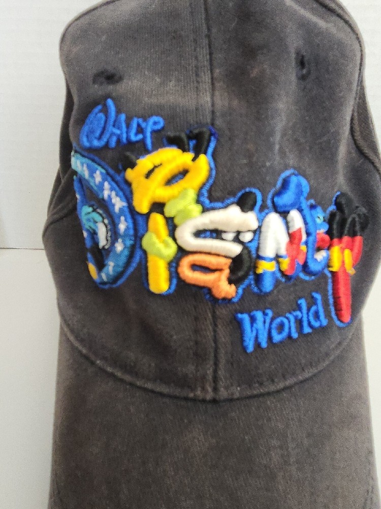 Vintage Walt Disney World Embroidered Baseball Cap, Dark Gray Adult Size. However,the size appears to be for youth....