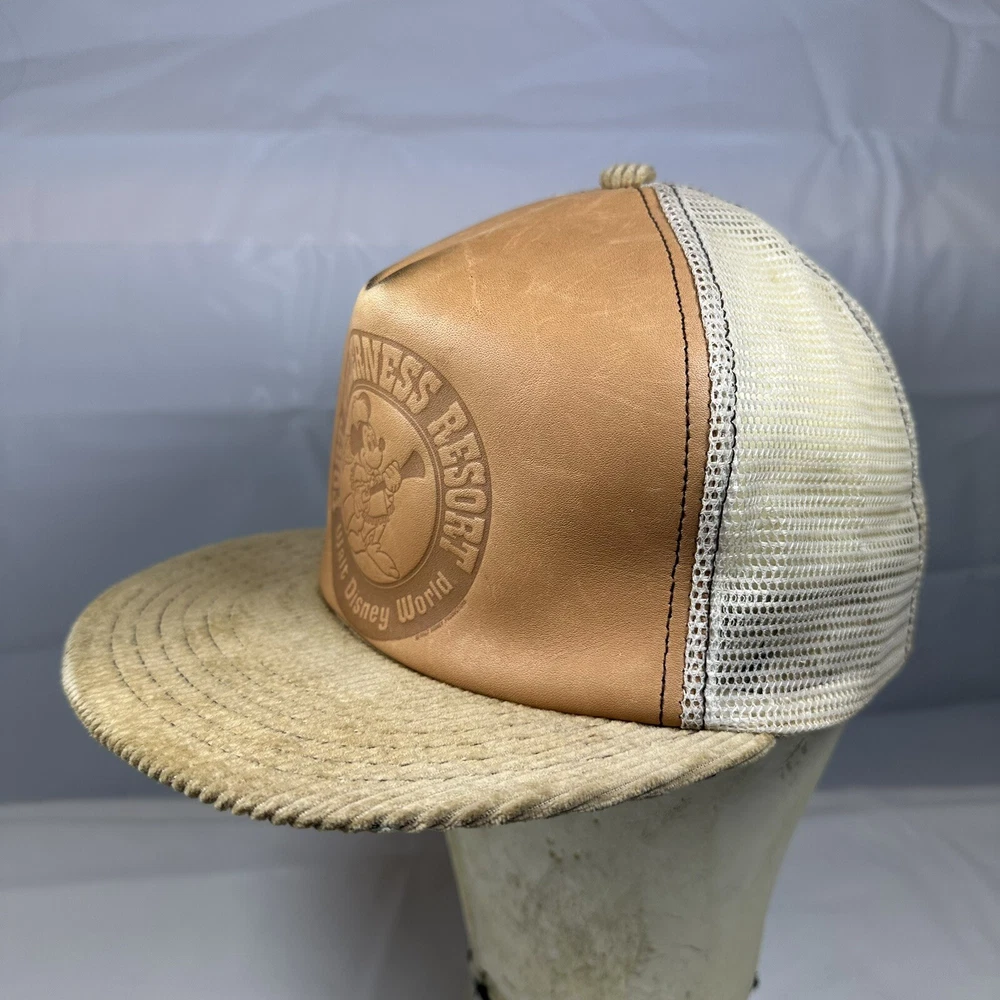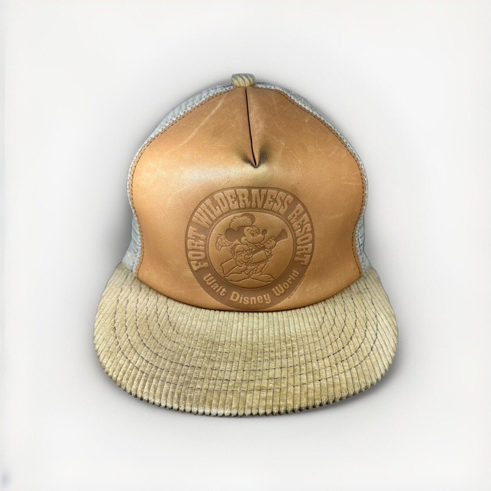 Vintage Walt Disney World Fort Wilderness Resort Leather Trucker Hat, Mickey Cap This hat is in very good pre-owned condition. See pictures for more details or feel free to message me with any questions. DISCLAIMER: "One Size" does not guarantee that this hat will fit YOUR head (They fit most). If you have ever had problems with adjustable hats fitting you before please contact me before purchasing. Thank you. 3 DAY HANDLING TIME. FREE SHIPPING.