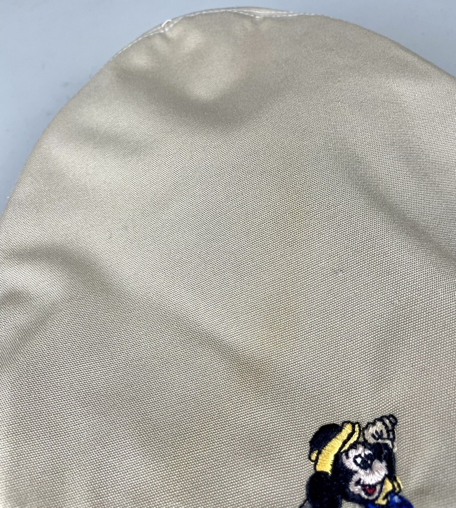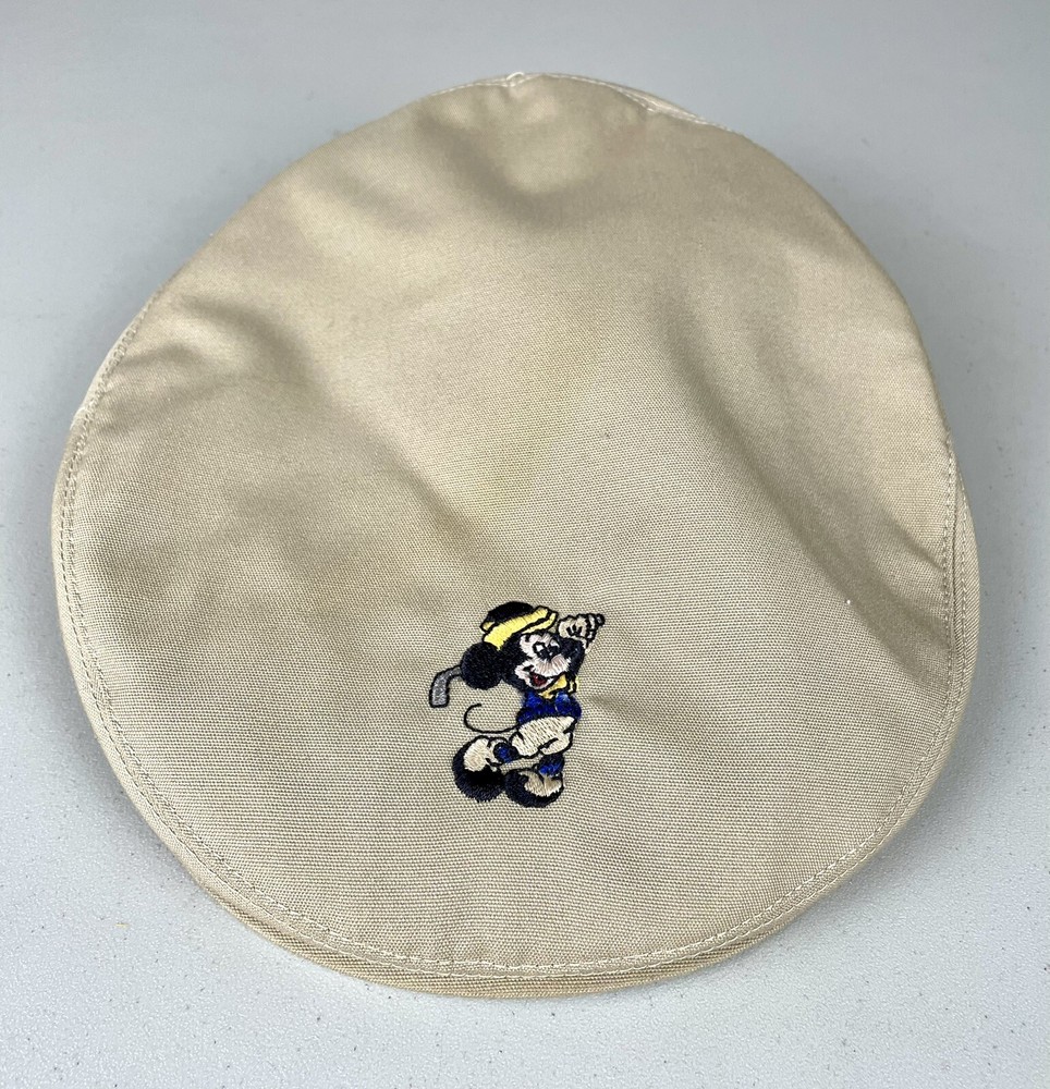 Vintage Mickey Mouse golf hat. It has an embroidered Mickey Mouse with blue and yellow on the front. There is some slight staining/discoloration. One owner. See photos for details. Item will be packaged with care.