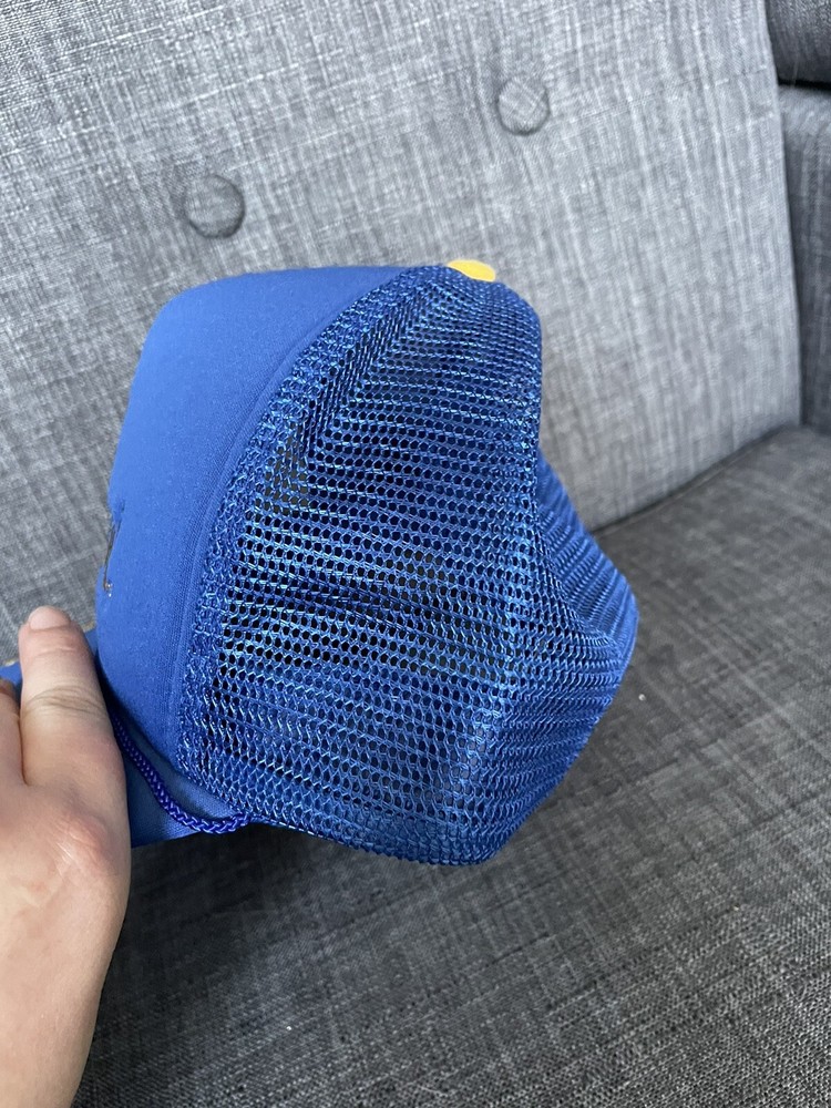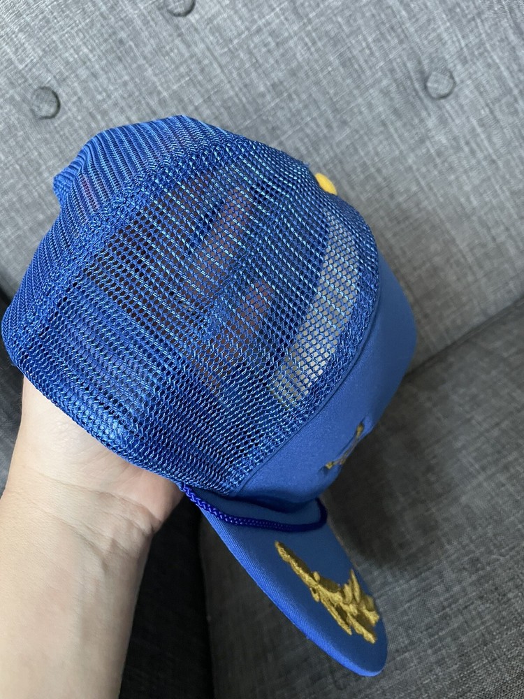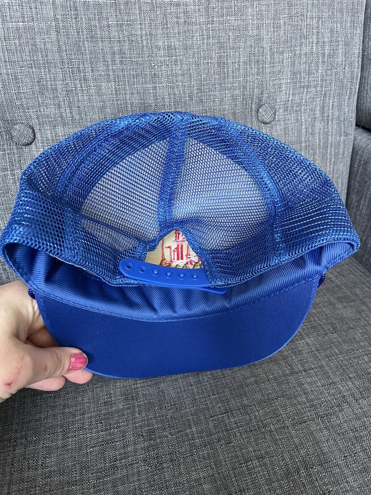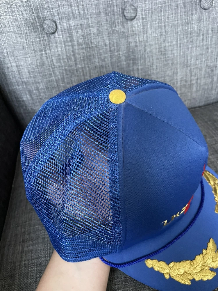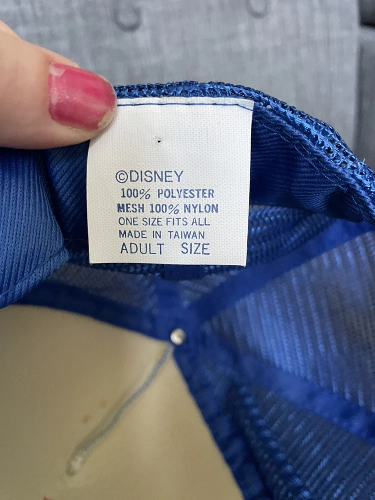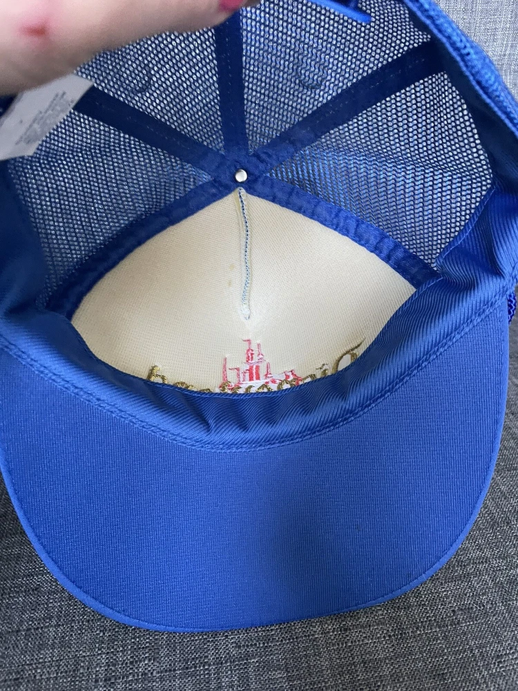 This vintage Walt Disney World hat is a must-have for any Disney fan. The gold leaf design on the blue mesh snapback cap is perfect for adding a touch of retro style to any outfit. The hat is made of a lightweight and breathable polyester and nylon blend, making it perfect for all seasons. The hat is one size fits most and features an adjustable snapback closure to ensure a comfortable fit for everyone. The hat is lined with rayon fabric for added comfort and durability. This hat is perfect for travel, parties, or casual wear. Get your hands on this unique and fun piece of Disney memorabilia today!