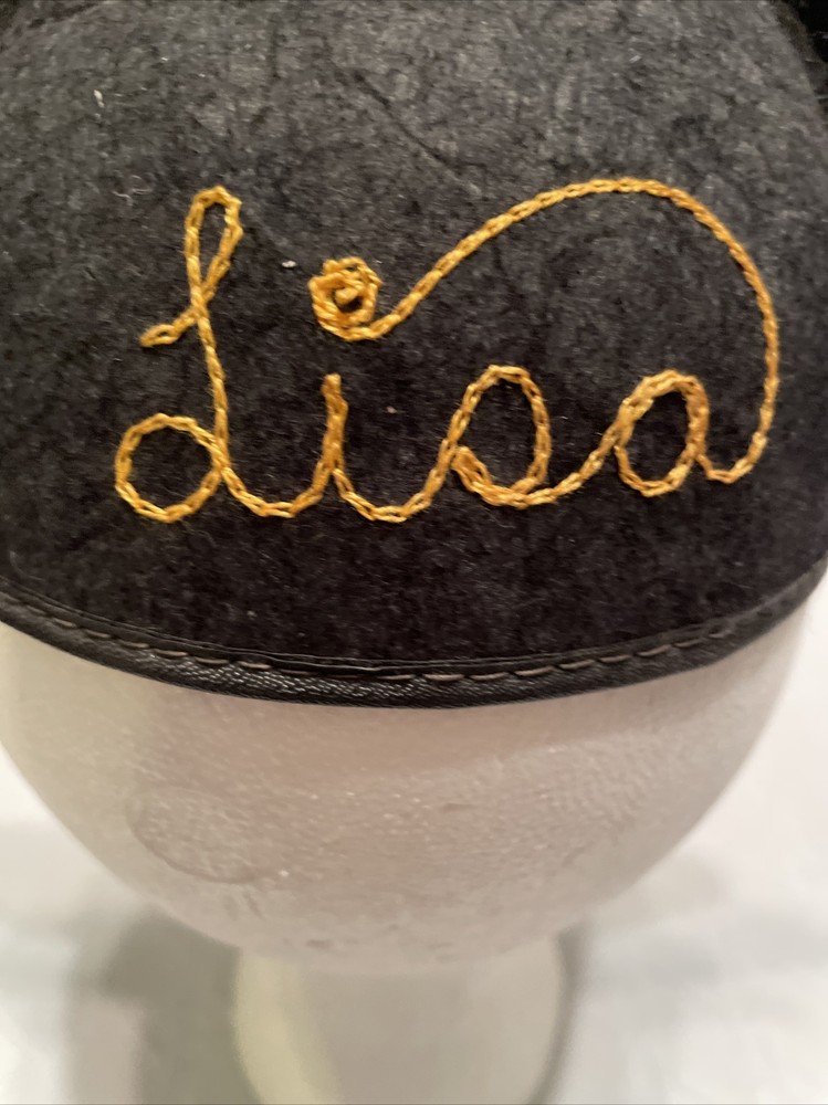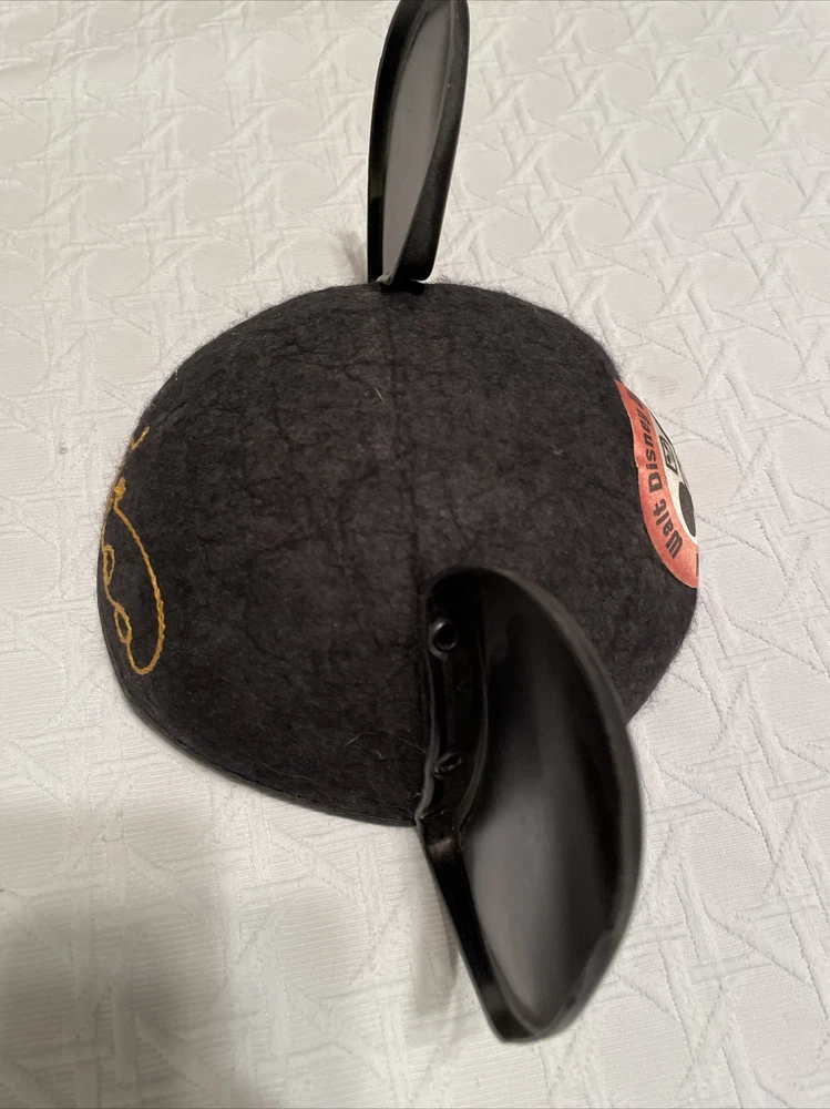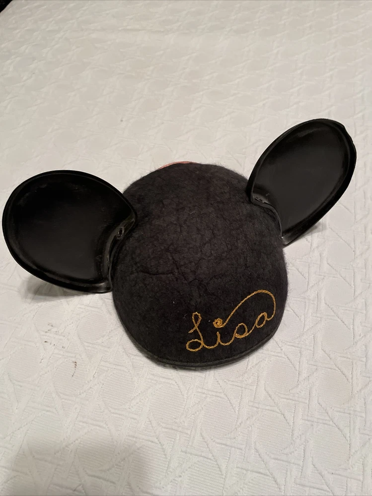 Get ready to add a piece of Disney history to your collection with this vintage Walt Disney World Mickey Mouse Ears Hat. The iconic black hat features yellow “Lisa” embroidered on the back, adding a unique touch to this classic piece. Show off your love for all things Disney with this perfect addition to any Disneyana collection. Has the made in USA tag. Size: small (this hat did not fit all the way down on the mannequin and it’s about 21 1/2 inches around the band. Condition: no strap. The left ear is little bent on the edge. Mickey Mouse red patch is faded. See pictures