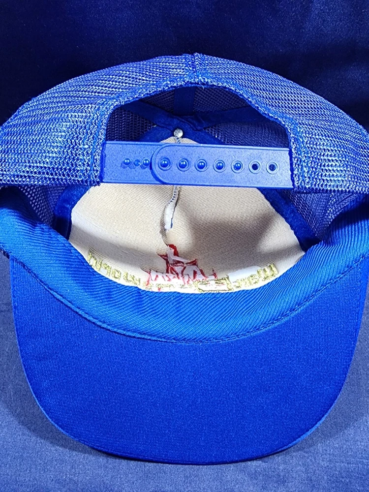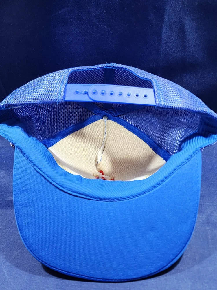 Item is new. Hat is blue with the logo being multi colored. Still in good condition. Please refer to the photos for judgement. Hat will be shipped in a box....