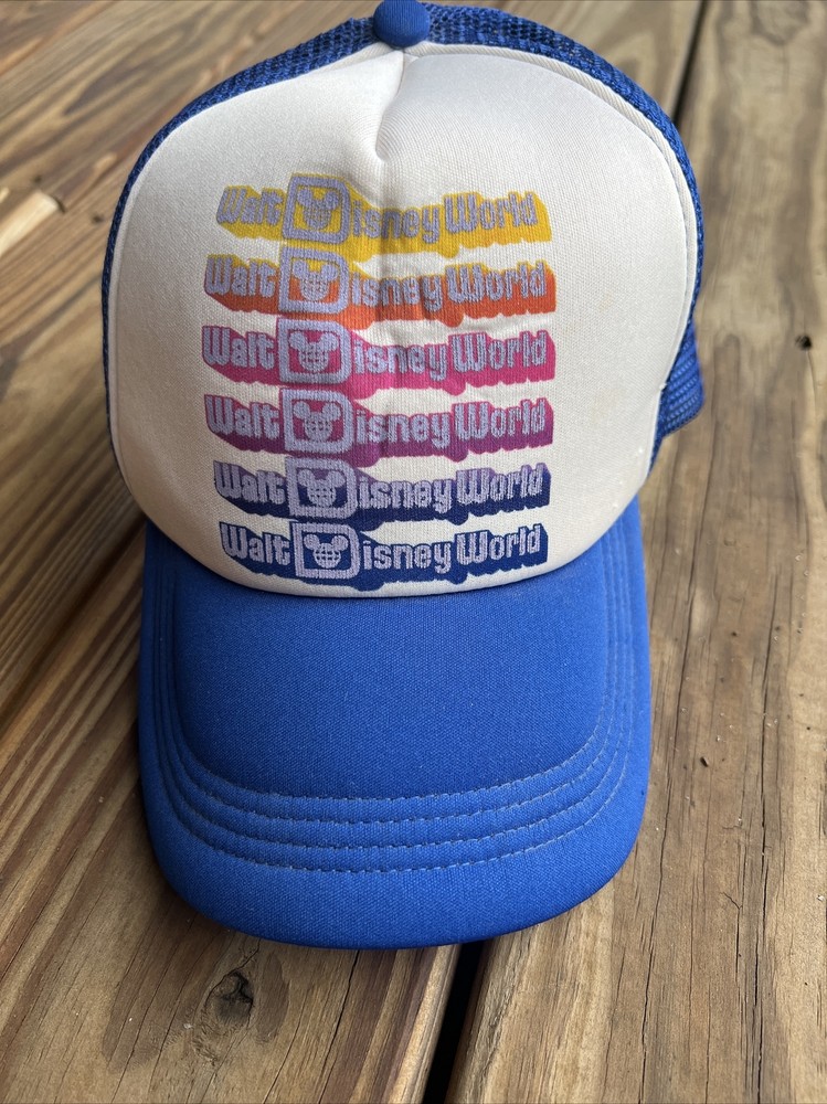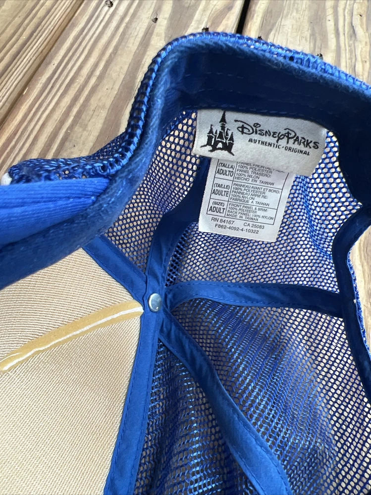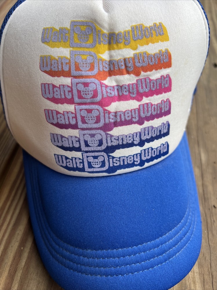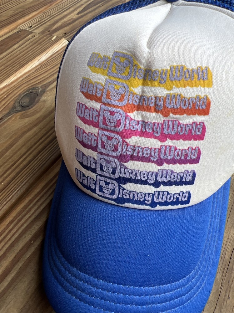 This vintage Walt Disney World hat is a must-have for any Disney fan! The blue mesh foam snapback trucker cap features a solid pattern and adjustable snapback for a comfortable fit. The unisex adult size hat is made of a durable polyester/nylon material and breathable mesh back, making it perfect for any casual occasion. The Disney Parks authentic hat also showcases the iconic Disney brand and theme with a retro Disney character design. This hat is perfect for any season, whether it's winter, summer, fall, or spring. So, grab this Disney treasure and add it to your collection! Condition as shown, good gently used vintage. Please let me know if you have any questions.
