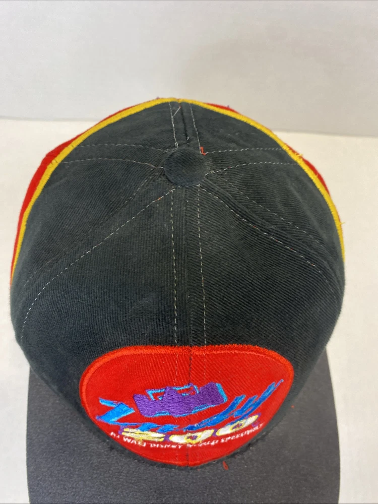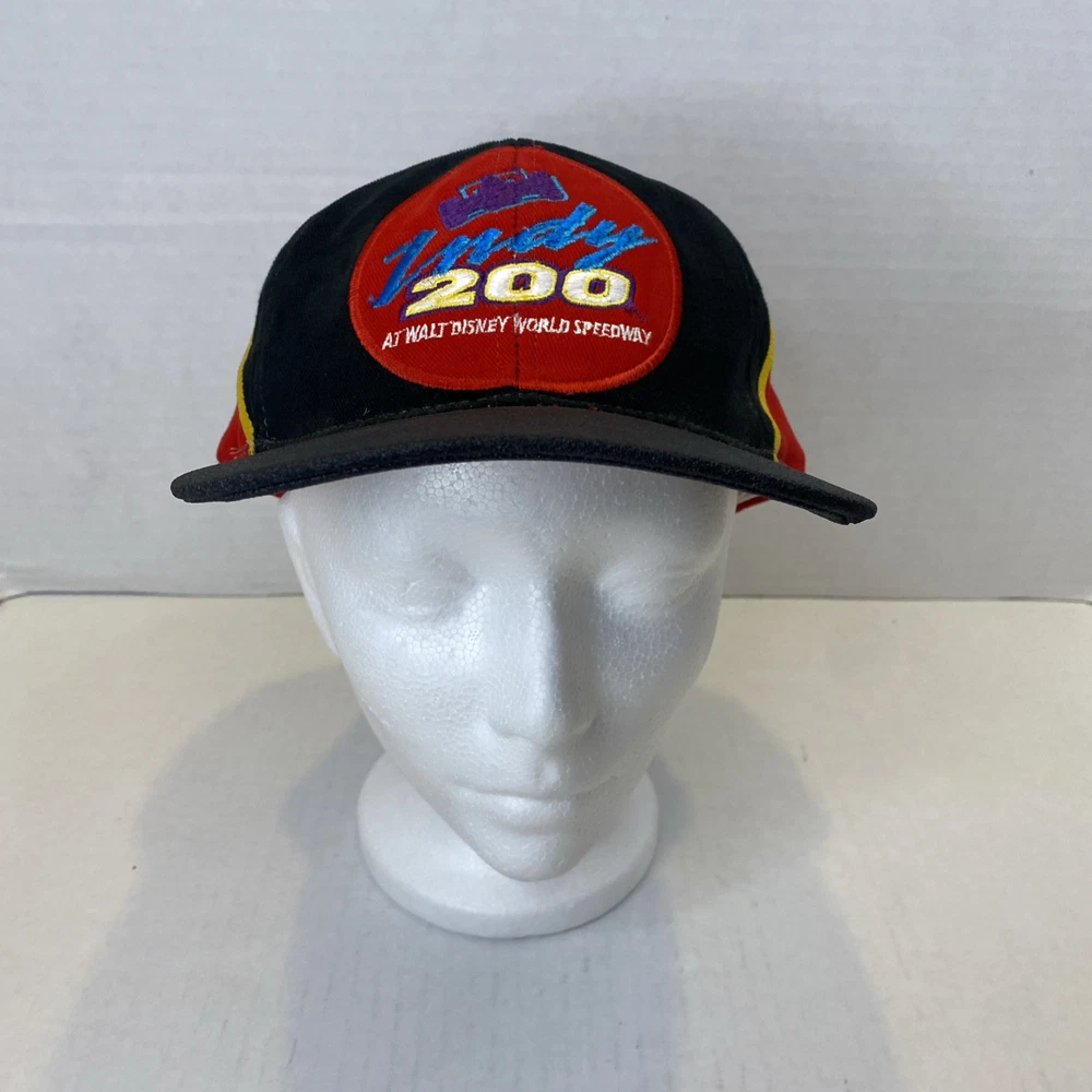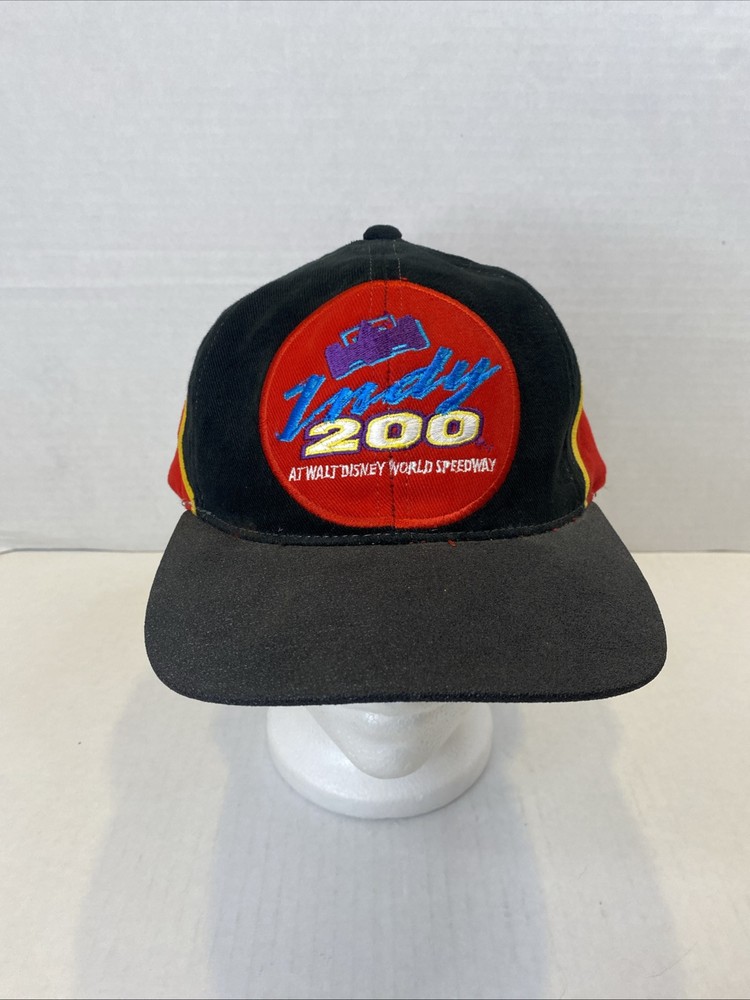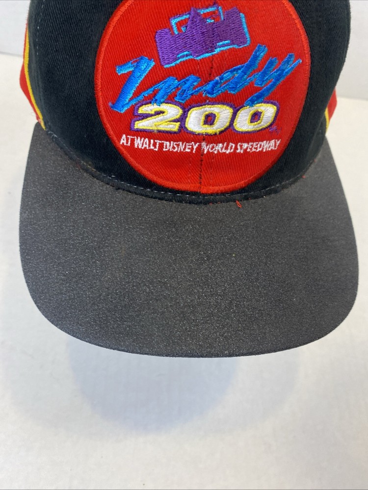 This Walt Disney World Indy 200 hat is in great pre owned condition with no scuffs or rips 100% cotton with a rubber bill to imitate a tire on a race car Embroidered on the front and the back One size fits all Buckle back that’s adjustable Great piece of vintage Disney memorabilia Please see photos Let me know if you have any questions Thank you