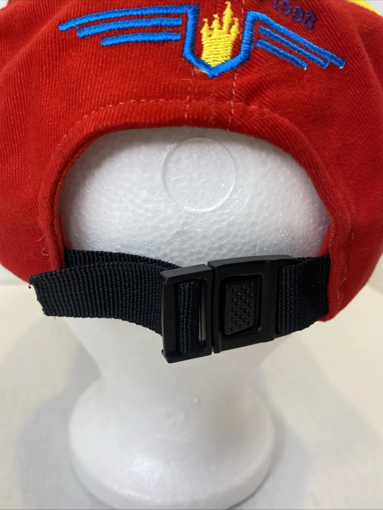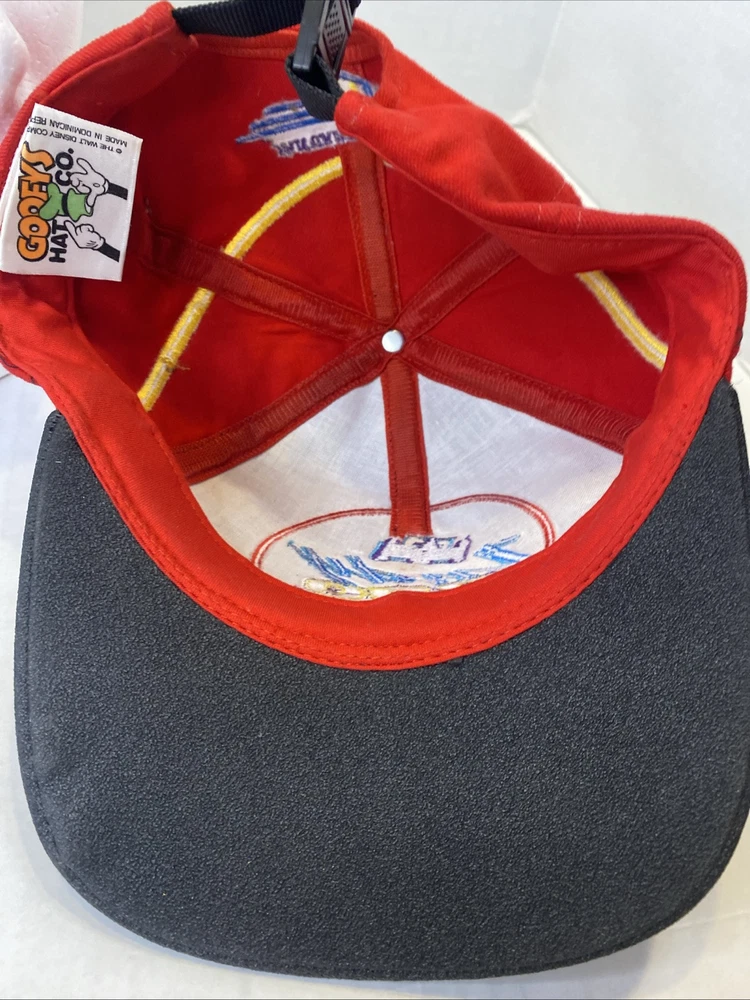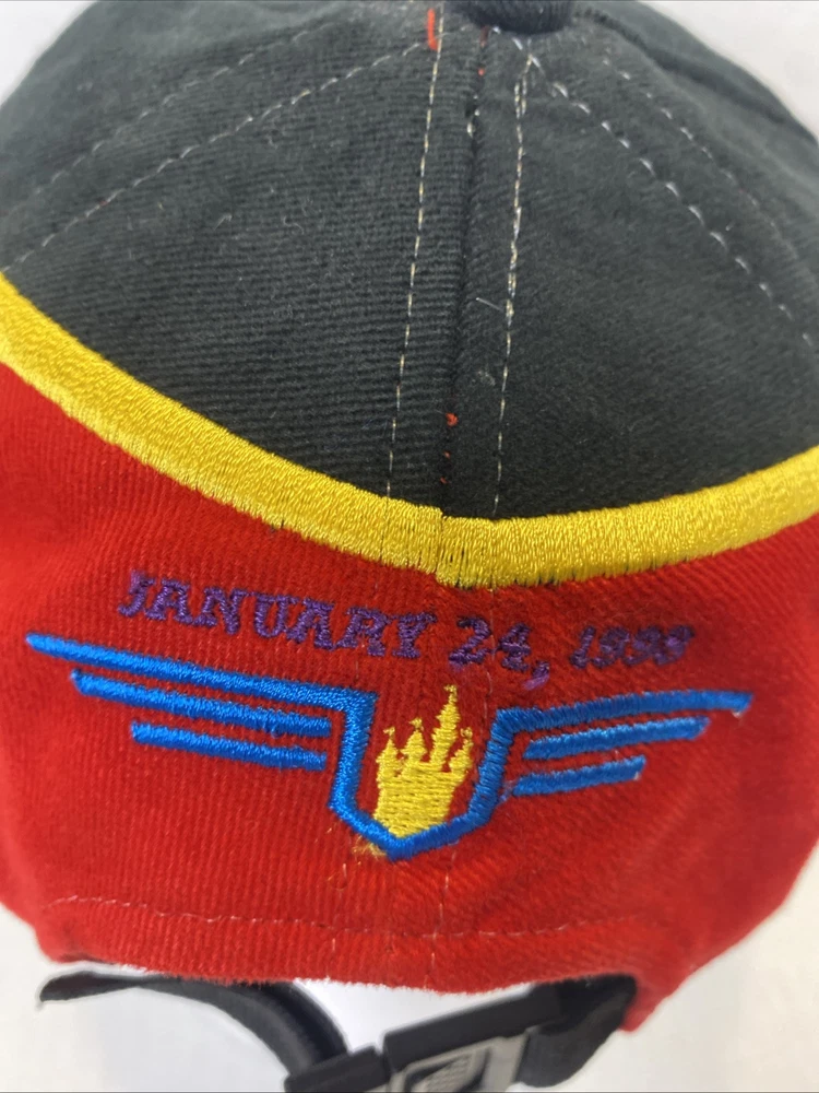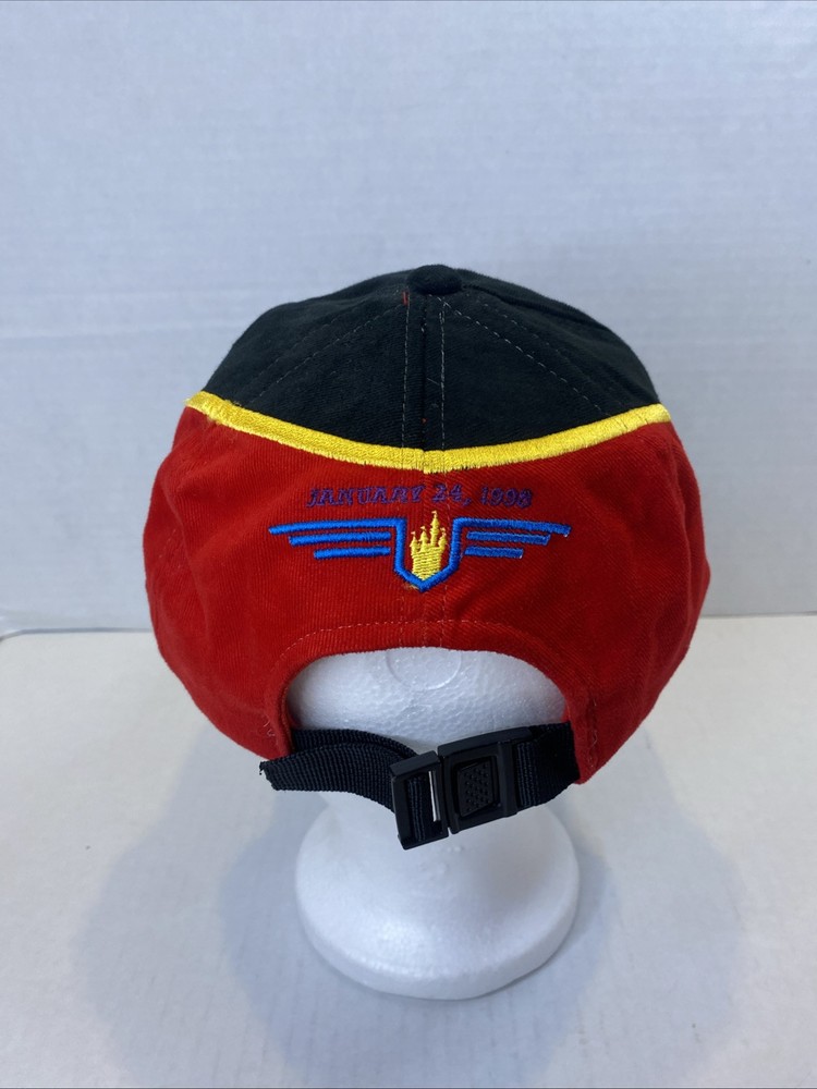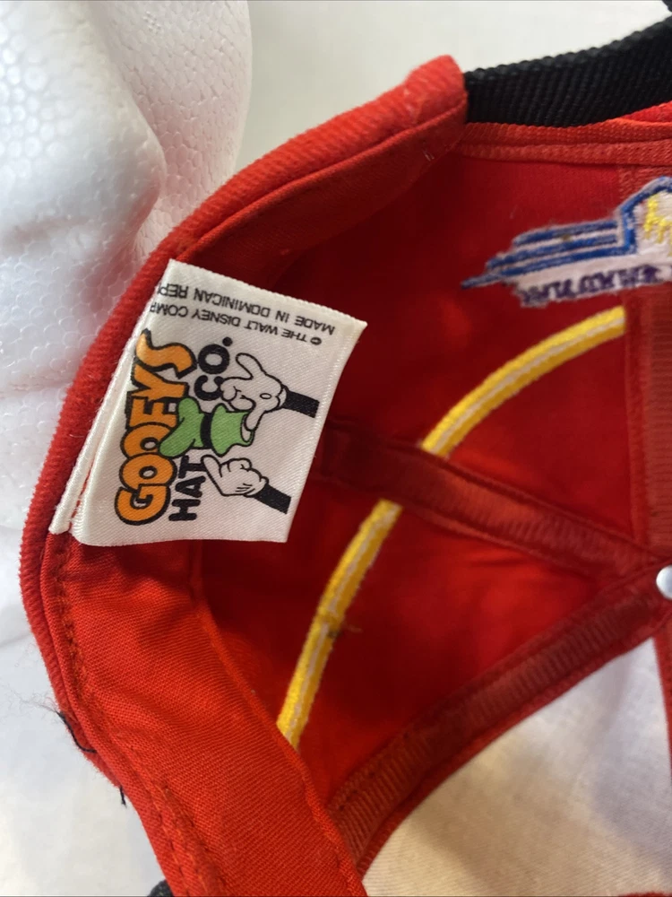 This Walt Disney World Indy 200 hat is in great pre owned condition with no scuffs or rips 100% cotton with a rubber bill to imitate a tire on a race car Embroidered on the front and the back One size fits all Buckle back that’s adjustable Great piece of vintage Disney memorabilia Please see photos Let me know if you have any questions Thank you