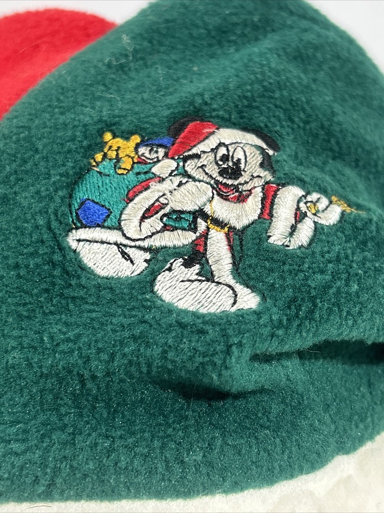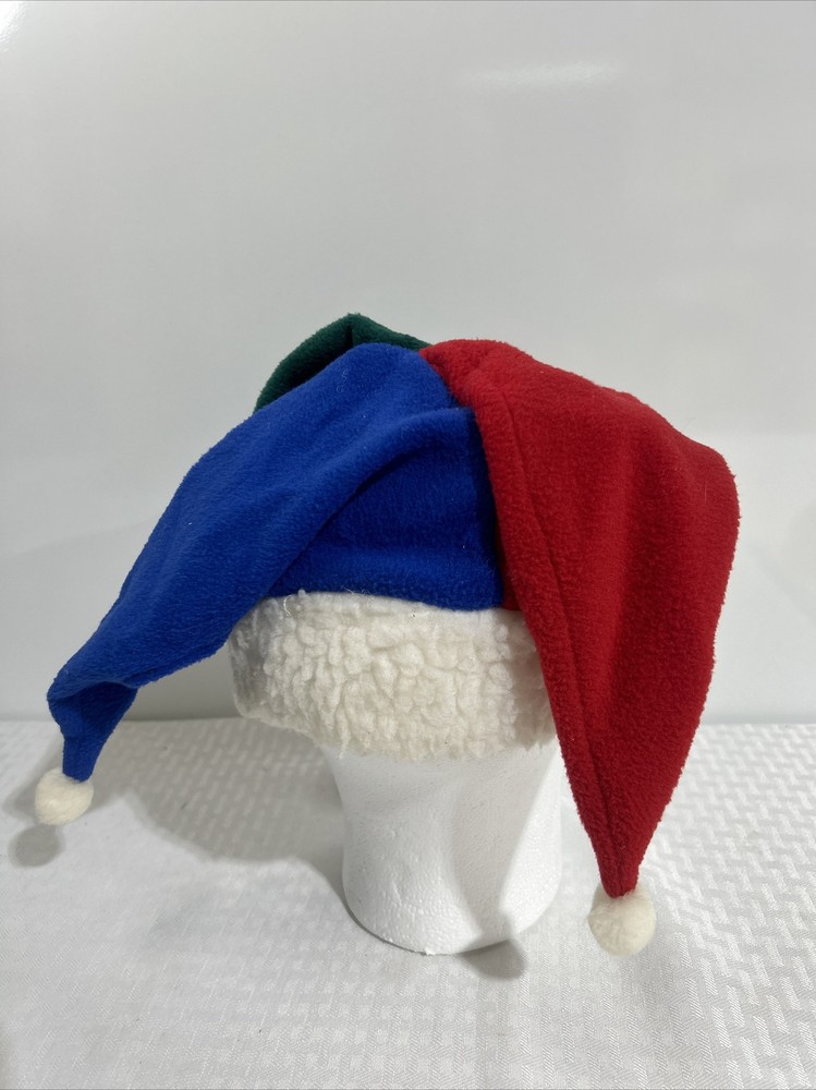 Vintage Walt Disney World Jester Hat Mickey Mouse STUFF FOR KIDS PLUSH. THE HAT IS RED, GREEN AND BLUE WITH WHITE SANTA CLAUS FLUFF FOR THE TRIM. THE MICKEY MOUSE BADGING ON THE FRONT IS EMBROIDERED. NO RIPS/TEARS. COMES FROM A SMOKE/PET FREE HOME.