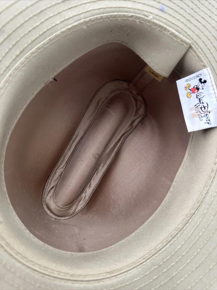 Vintage Walt Disney World Large Safari Hat Mickey Mouse Leather Patch USA