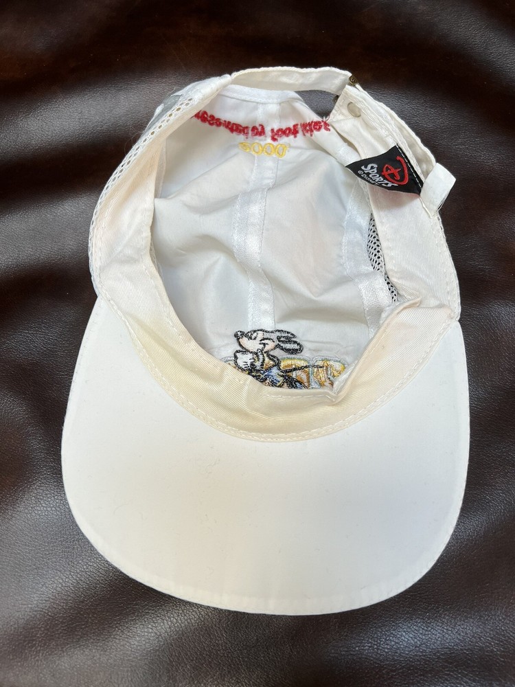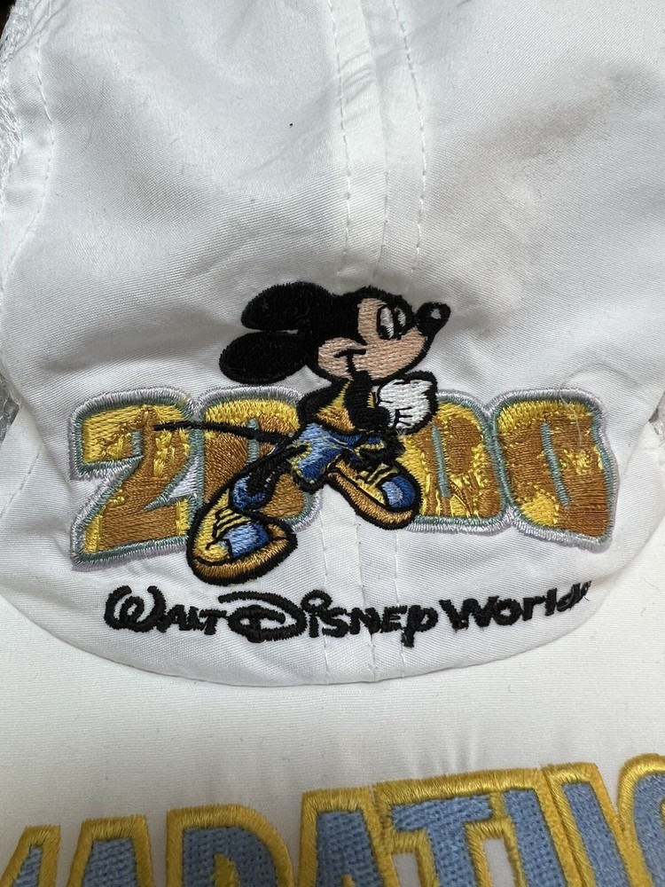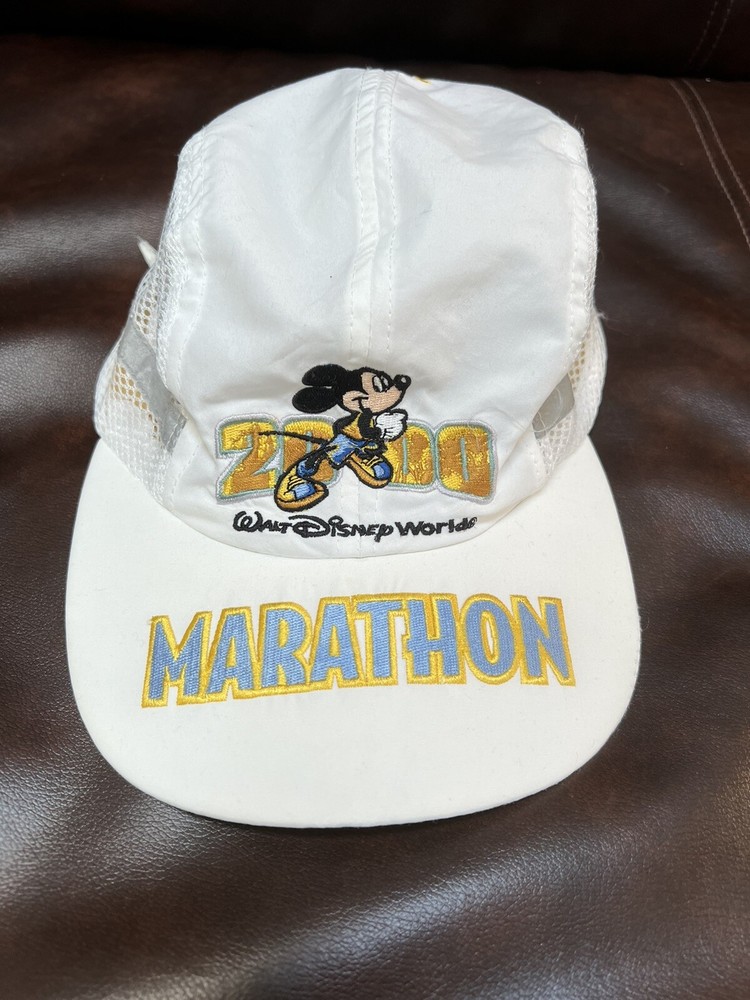 Vintage Walt Disney World MARATHON Hat Mickey Mouse Strap Back WOMENS YOUTH. Vintage 2000 Disney hat Minimal use Has some yellowing on the inside However extra clean! All original tags in tact Small tear near strap but not visible because strap covers it Embroidered logo Front and back No reserve