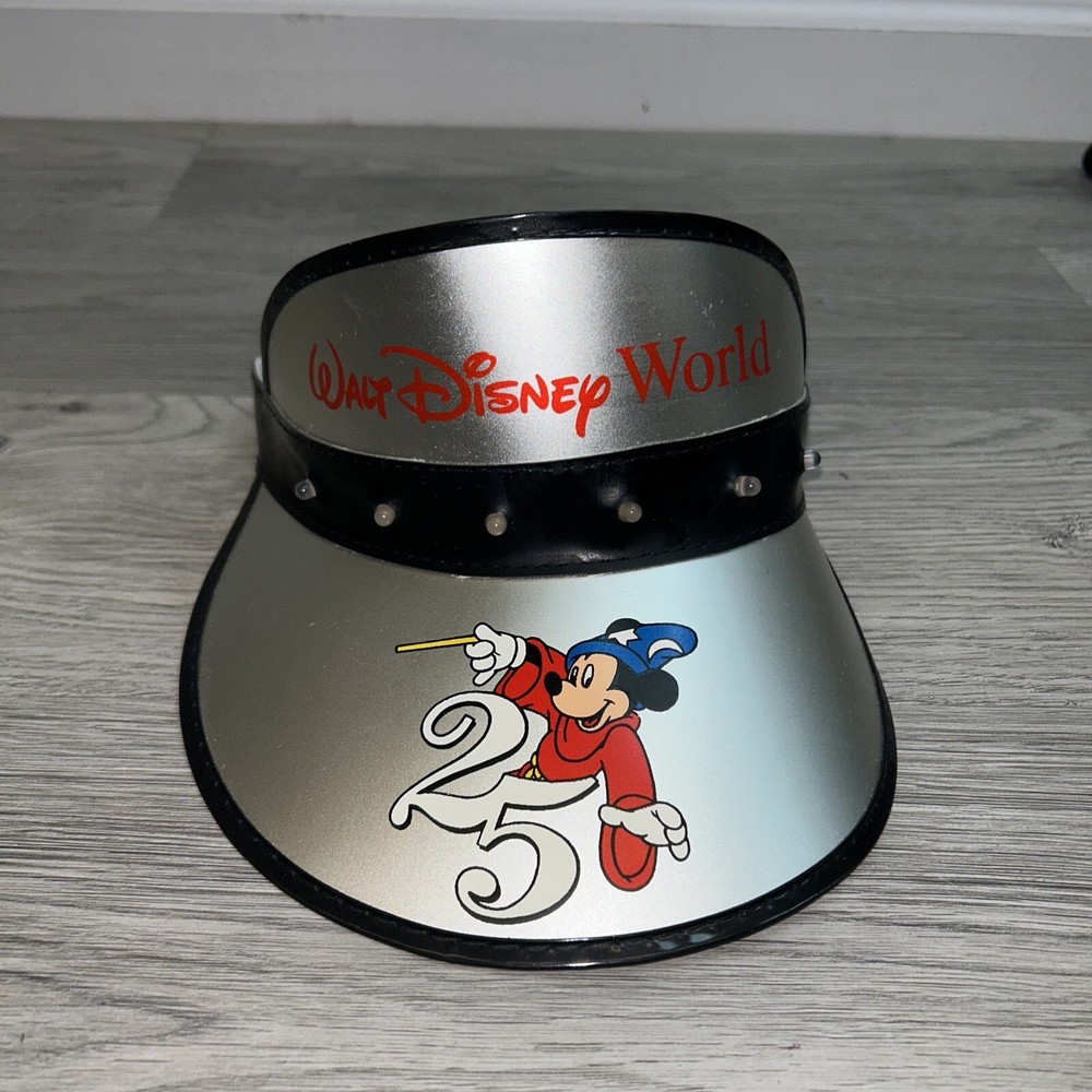 This vintage Walt Disney World Mickey 25th Anniversary light-up visor hat is a must-have for any Disneyana collector. The hat features the beloved character, Goofy, and has an adjustable strap for a comfortable fit. It also lights up, adding a fun touch to any Disney park outfit. This collectible item is perfect for those who love Walt Disney World and its history. The hat is in great condition, ready to be added to your collection. Don't miss out on the chance to own a piece of Disney magic!