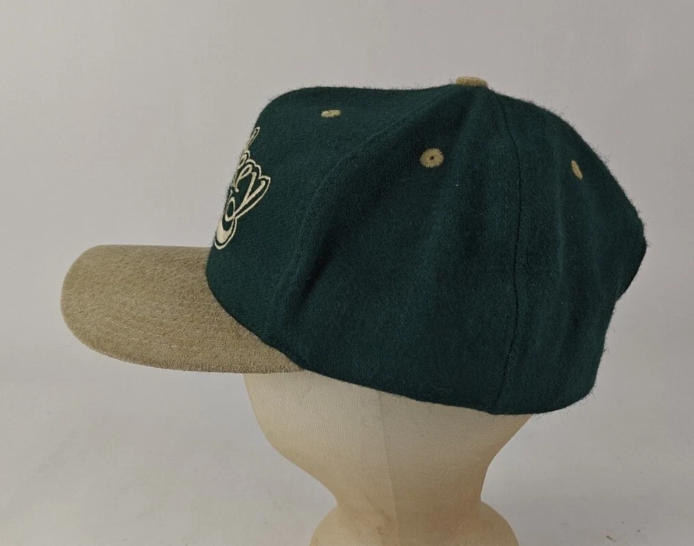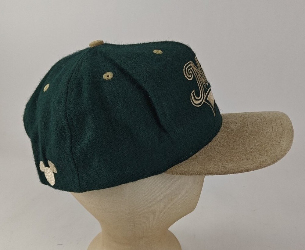 Vintage Walt Disney World Mickey Mouse Dark Green Tan Wool & Suede Snapback Hat. In good vintage condition. Green wool hat with tan suede bill. See photos. I will ship out within 3 days after receiving cleared payment. International Shipping is processed through the Ebay International Shipping Program. Please feel free to ask any questions. Please check out my store for other great gently used and vintage clothing and other collectibles. Thanks for shopping with North Texas Vintage Goods!