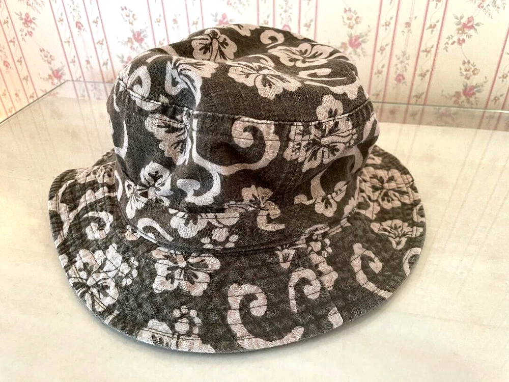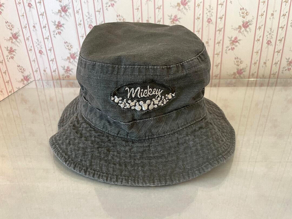 Vintage Walt Disney World Mickey Reversible Olive Green Bucket Hat. * Hawaiian motif on reverse side. Tag cut out on that side - Please see photos for condition & detail -