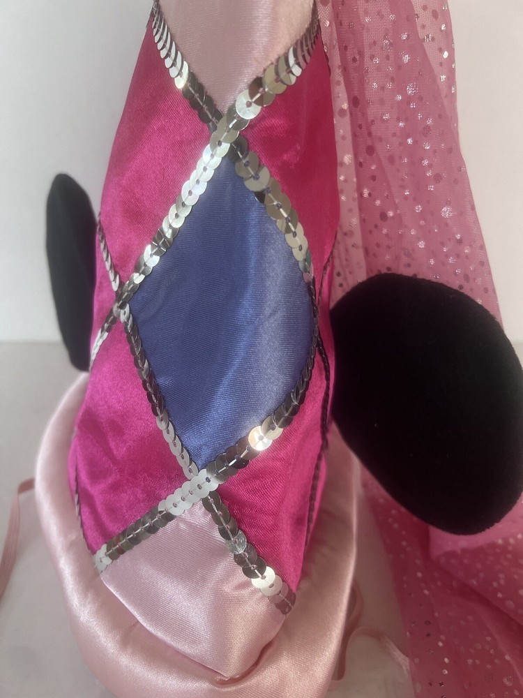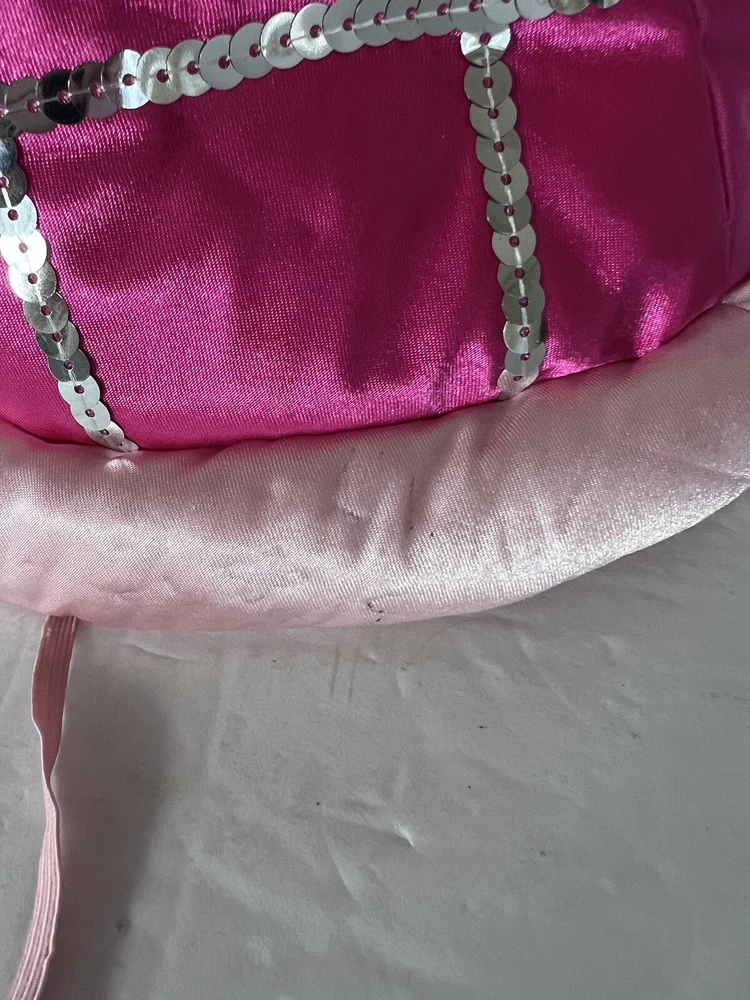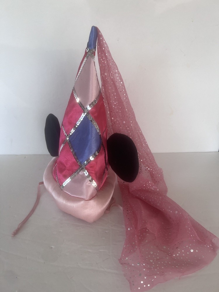 Vintage Walt Disney World Minnie Mouse Princess Hat Ears Veil Pink Sparkle Chin strap Small pen marks on pink brim-pls see detailed pics-otherwise great condition
