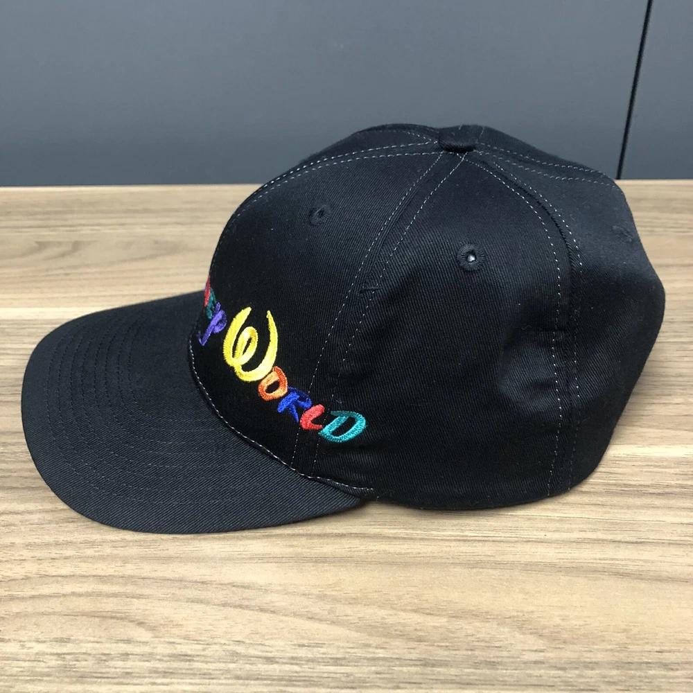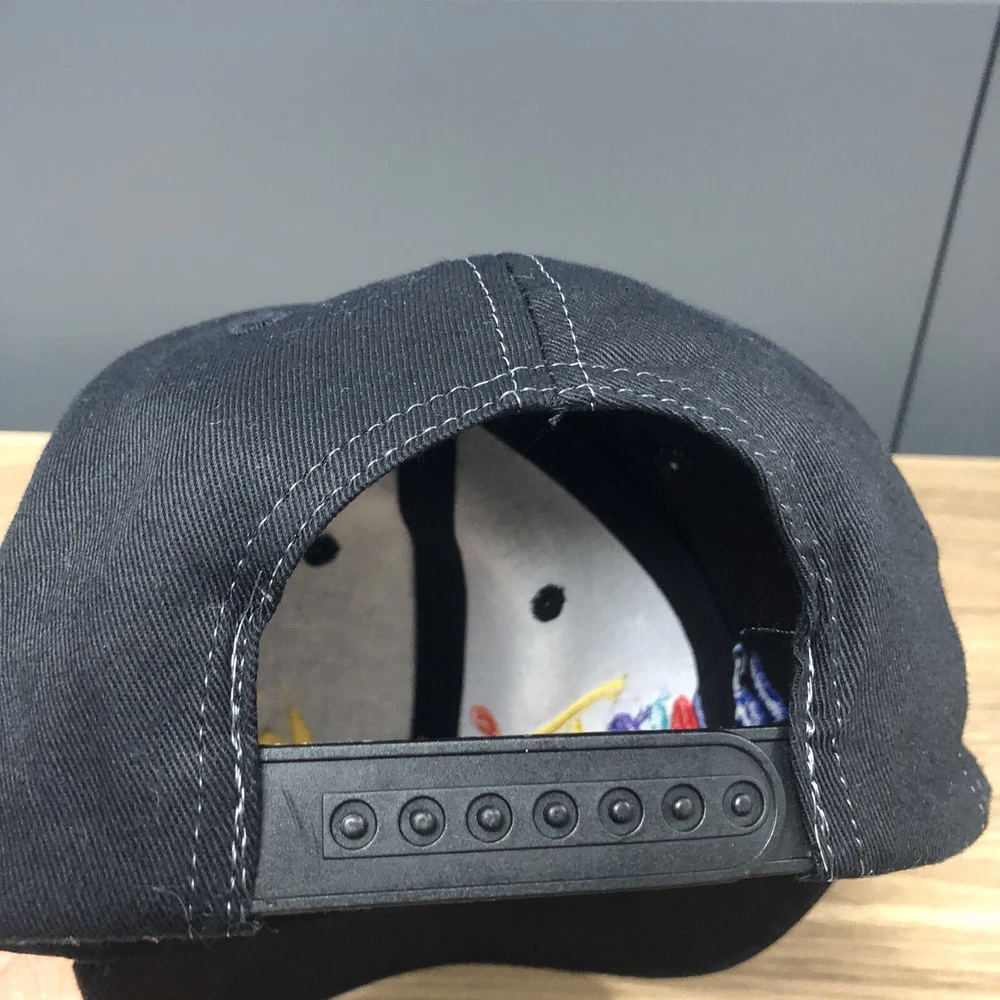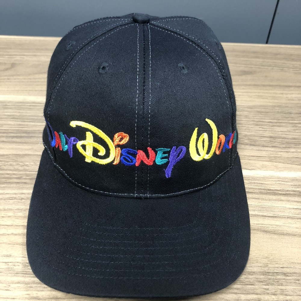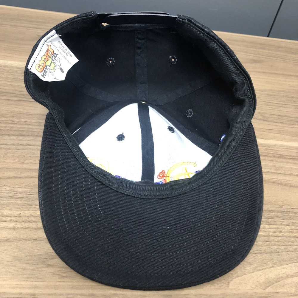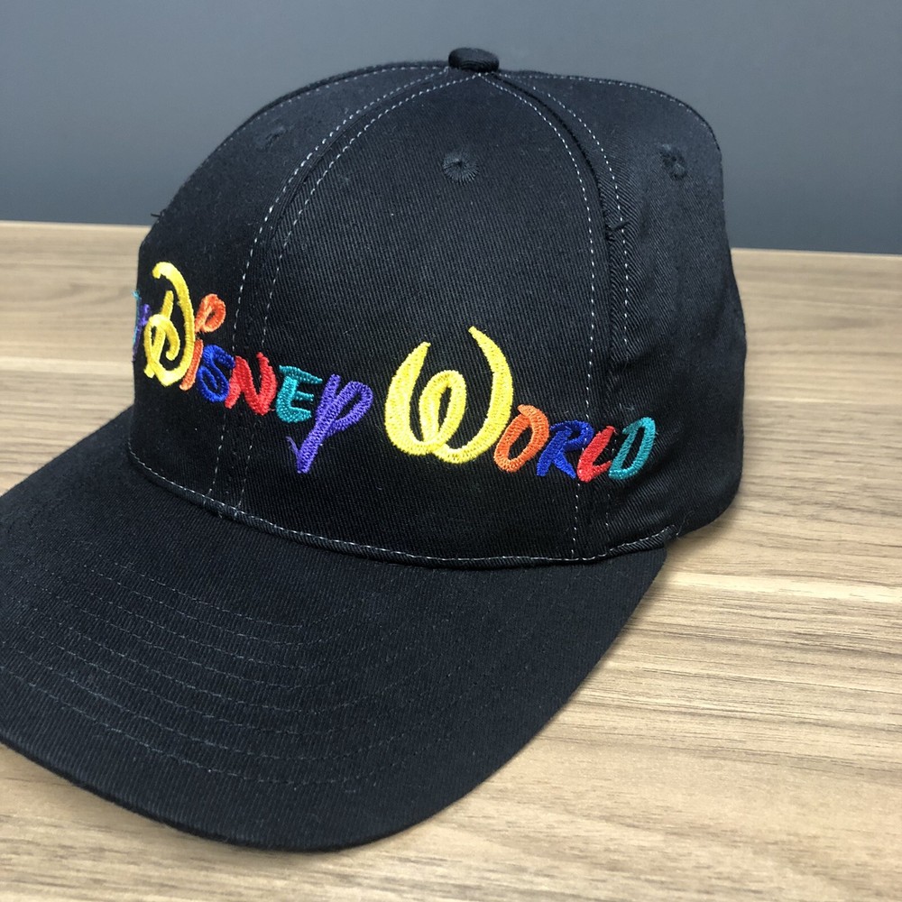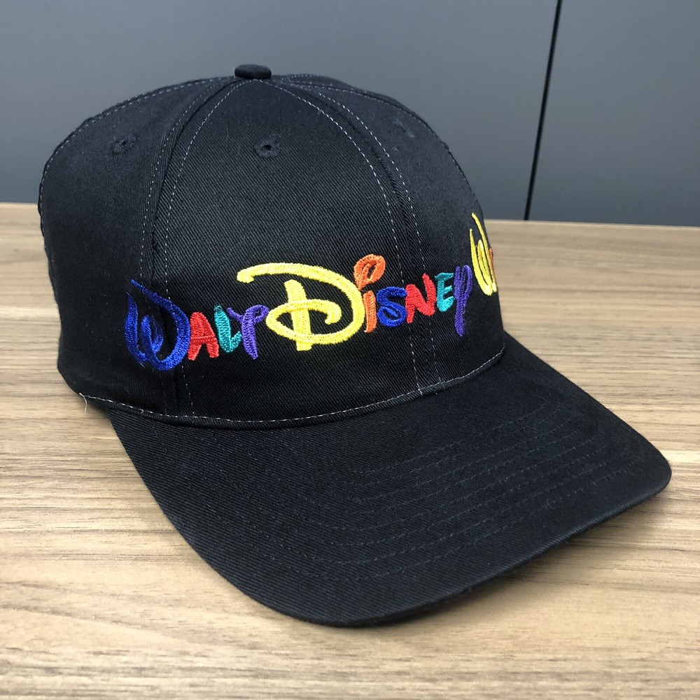 This vintage Walt Disney World script black adjustable snapback hat is a must-have for any Disney fan. The hat features a solid pattern with Mickey Mouse character and Goofy's Hat Co. design. It's perfect for travel, casual outings, and workwear. The adjustable snapback ensures a comfortable fit for all head sizes. The hat is made from an unknown material and has a black color that matches any outfit. It's a unisex hat suitable for both men and women. The cartoon theme adds a touch of fun to the hat, making it a great addition to any Disney collection. This hat is a vintage piece, perfect for those who love classic Disney memorabilia. It's a great way to show off your love for Disney without compromising on style. The hat has been hand washed, please see the pics for condition. The hat ships in a box.