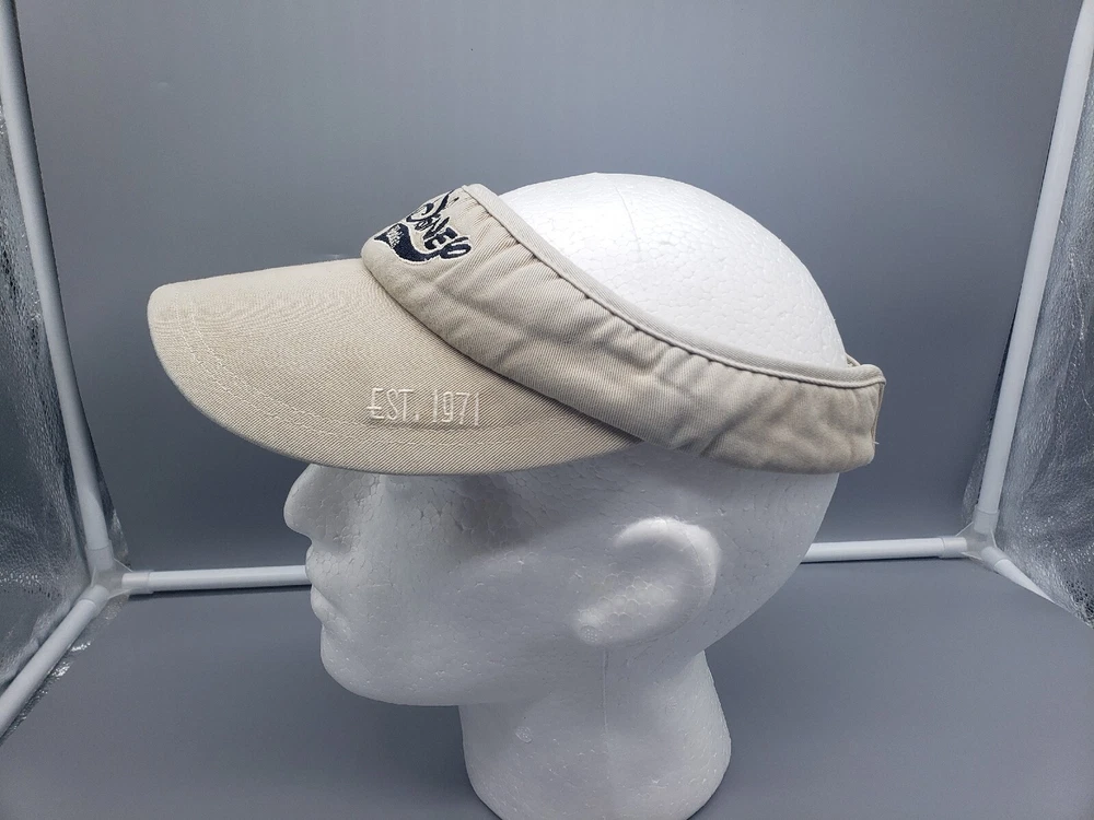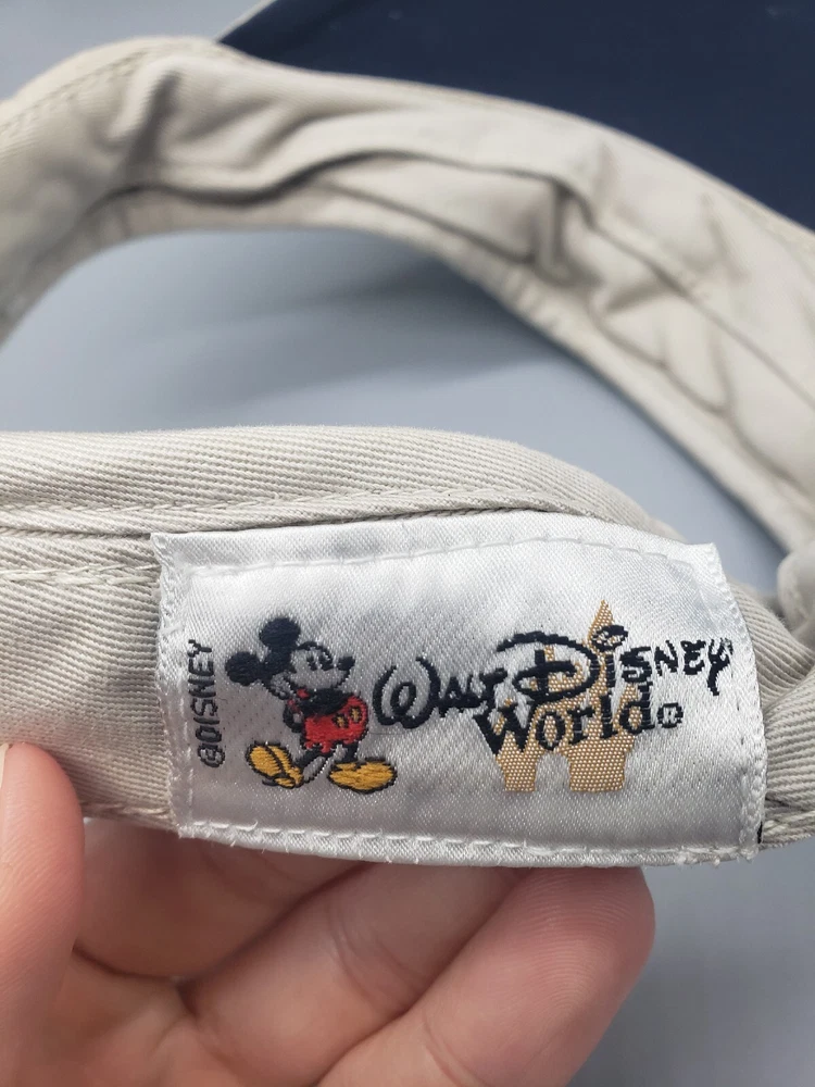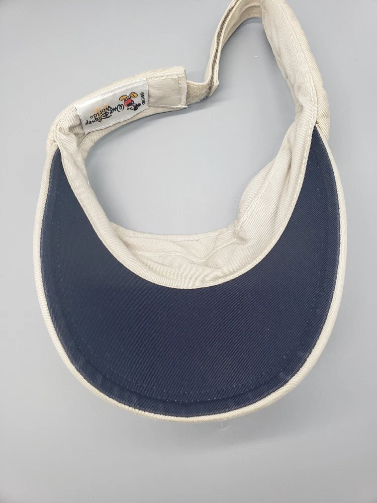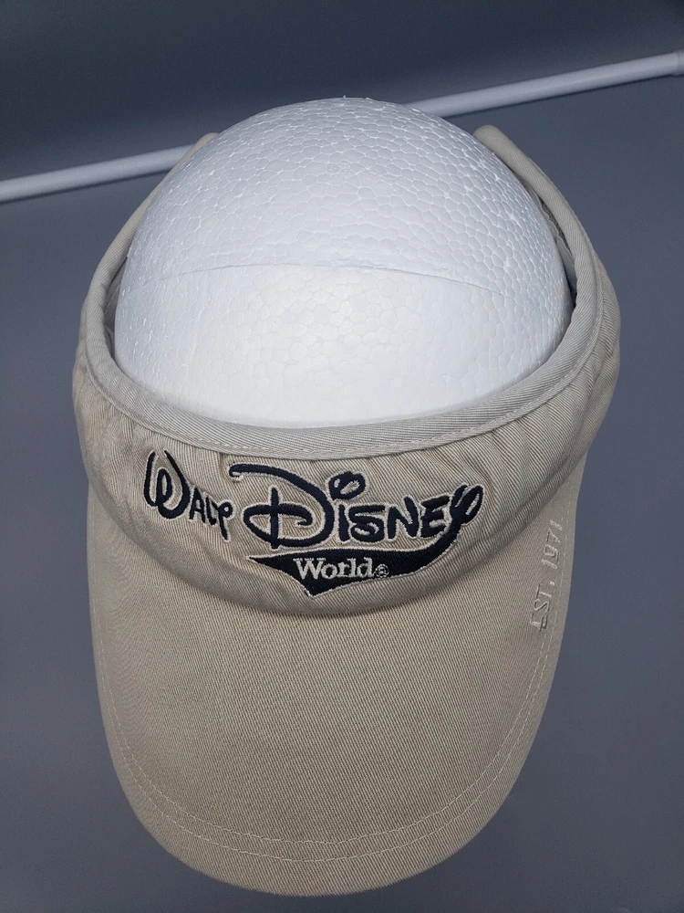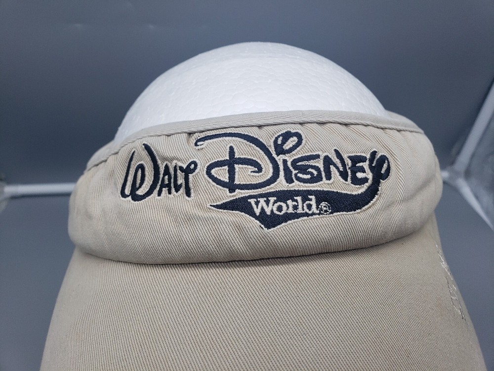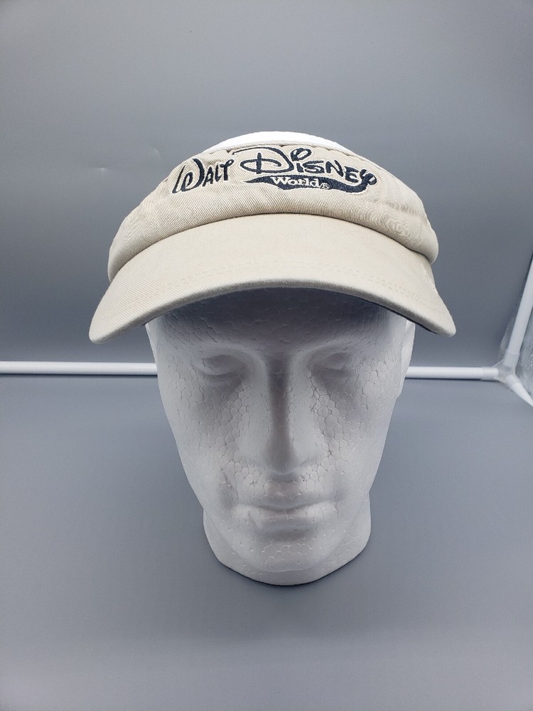 Vintage Walt Disney World Sun Visor Hat Beige Strapback Material tag is missing Please examine the photos for measurements and details of any flaws. All clothing has been washed and cleaned per eBay's policies. Combined shipping available on multiple item orders. Ships same day or next day!