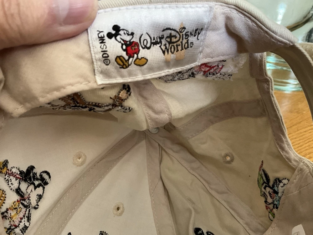 Add a touch of nostalgia to your wardrobe with this Vintage Walt Disney World Tan Hat. The hat features an adjustable strap to fit all head sizes and is perfect for any Disney fan. The hat is made of high-quality materials and boasts an iconic Mickey Mouse design that will never go out of style. Whether you're headed to Disneyland or just want to show off your love for all things Disney, this hat is a must-have. The hat is unisex and suitable for both men and women. It is a great addition to any Disney collection and is sure to become a favorite. The hat is made in China and is part of the Disneyana collectibles category. Get ready to turn heads with this stylish and timeless piece! Open to offers