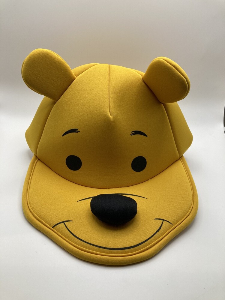 This vintage Walt Disney World Winnie The Pooh character hat features the beloved Winnie The Pooh character from the Disney franchise. Perfect for collectors and fans of the Winnie the Pooh TV show, this figurine hat is a unique piece of Disneyana collectibles. With its nostalgic charm and connection to the iconic Disney brand, this hat is a must-have for any Disney enthusiast looking to add a touch of whimsy to their collection.