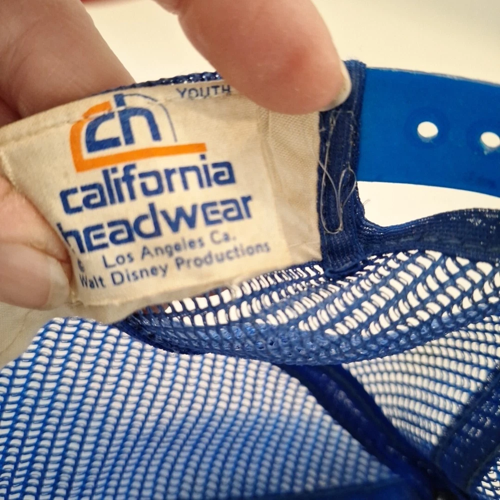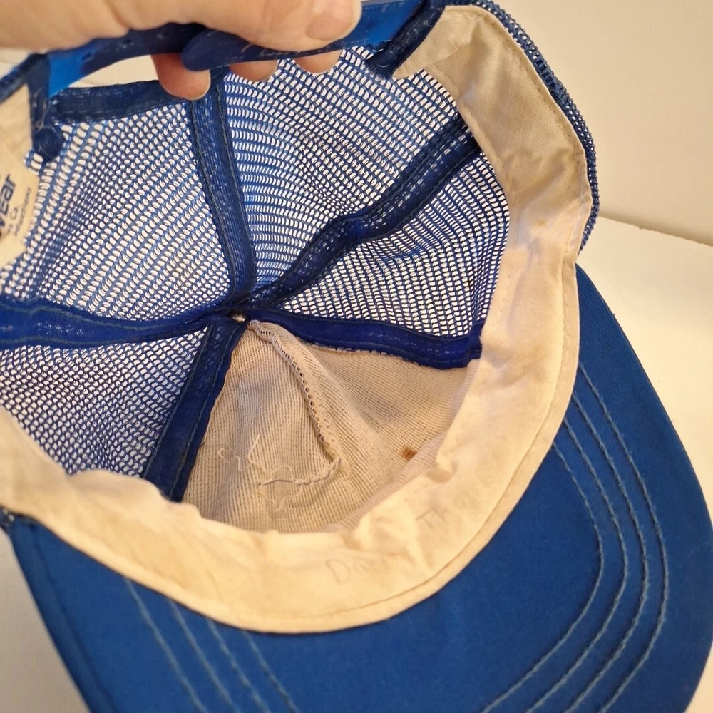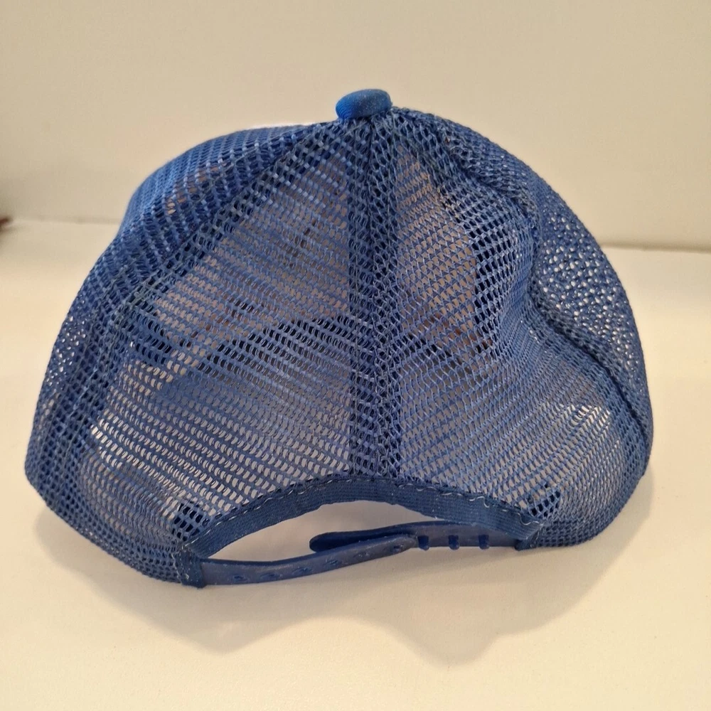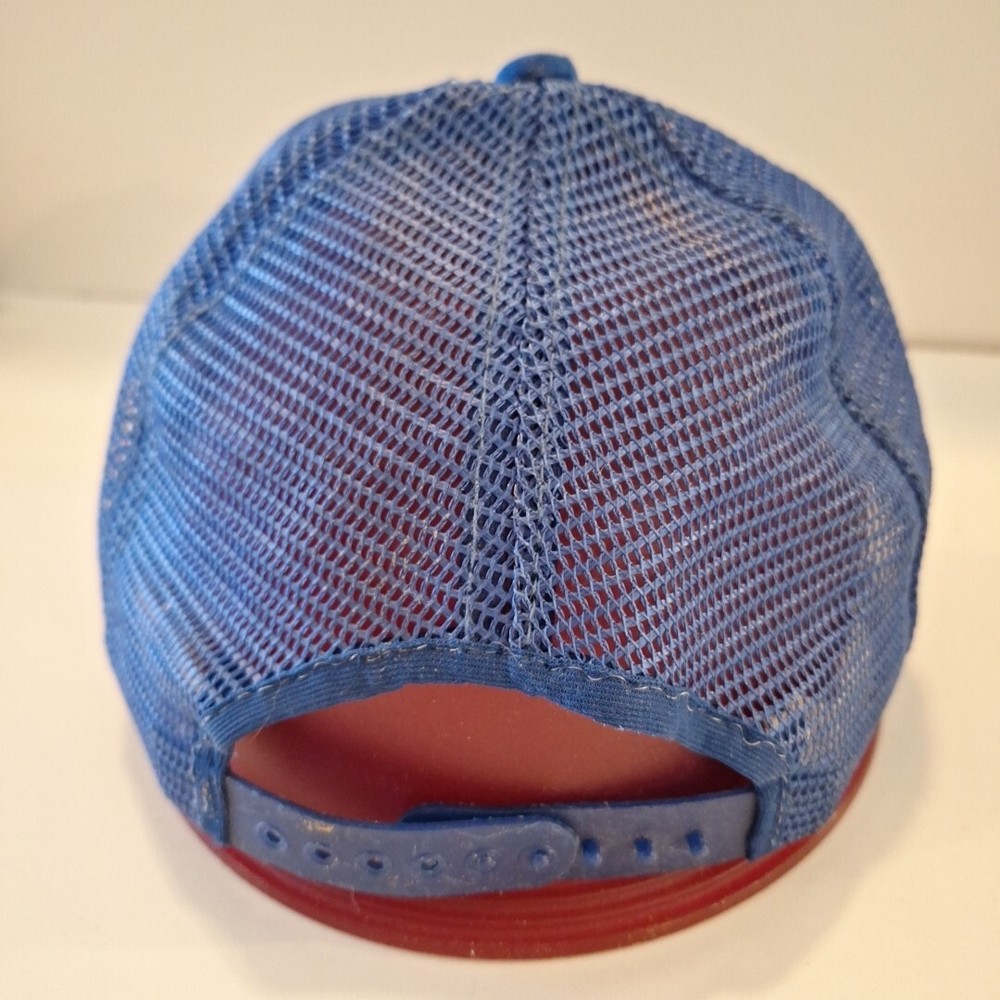 This youth hat was made in the US and is a vintage 80's hat. This has been worn and has some inside stains/yellowing which I did not attemp to clean because I'm not sure the best way to do. It will not with stand the washing machine, it would be a hand wash for sure. The coloring is bright. This hat has sat in a tote for many years and is a bit misshapen which you can see in the pictures. There's a bowl under it in the first pictures. The pictures show all the flaws, including the two creases on each side of the brim. The plastic adjustable strap is in good condition with no cracks. There is a faint name on the inside. This is an As Is listing. Please email me with any questions. Thanks for looking and happy shopping!