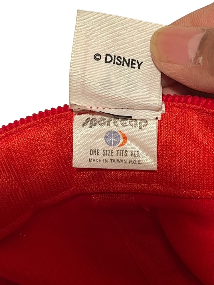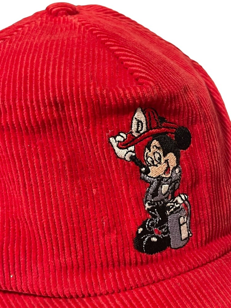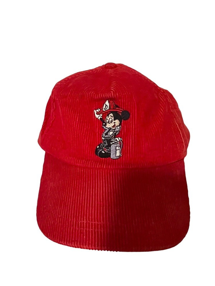 Add a touch of Disney magic to your outfit with this vintage red corduroy baseball hat featuring an embroidered Mickey Mouse as a fire fighter. The hat is perfect for any Disney lover looking to add a unique piece to their collection. The hat is one size fits all and suitable for adults of any gender. The vibrant red color and high-quality embroidery make it a standout accessory for any Disney-themed event, such as a trip to Walt Disney World. This hat is a must-have for any fan of Mickey Mouse, Disney, or vintage collectibles. Please look at pictures for actual condition. The hat is in good condition for it age. Cap have not been washed yet. I leave that to the buyer. Didn’t want to damage it in any way.