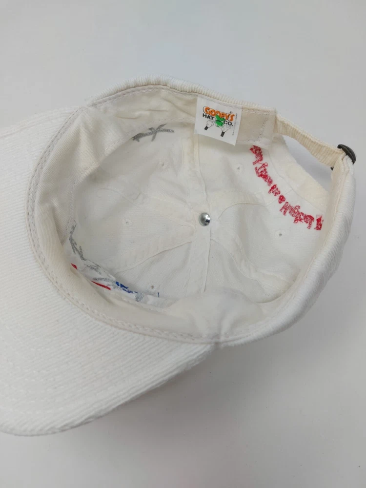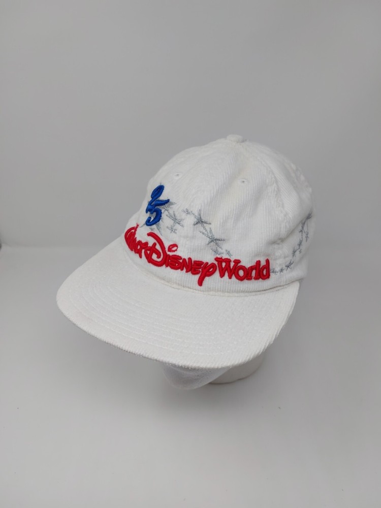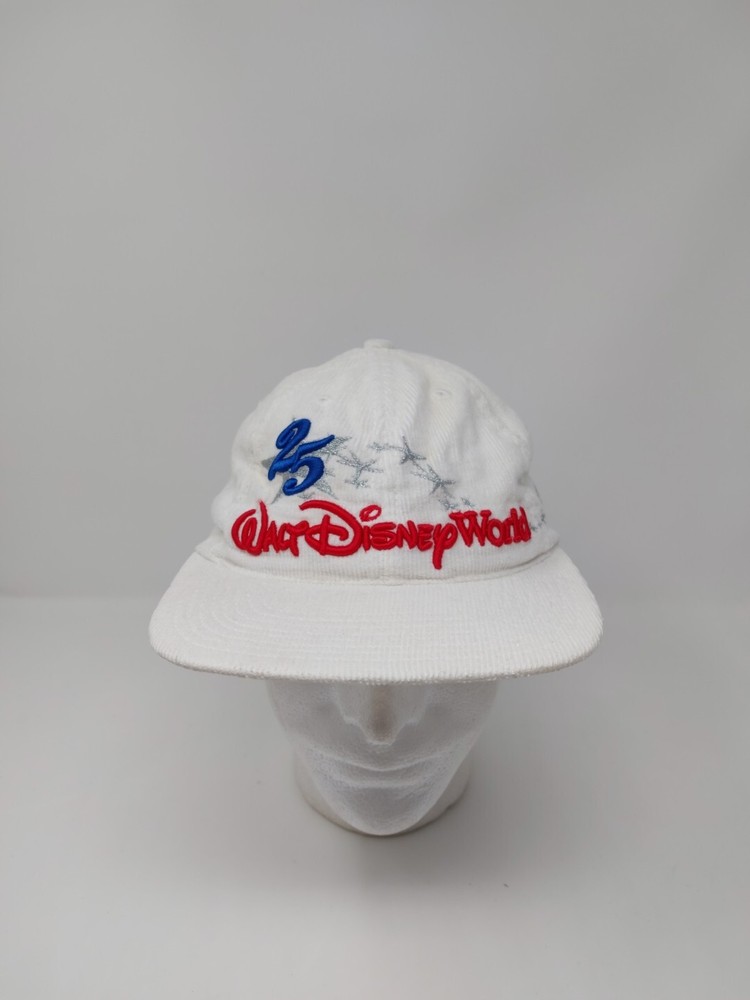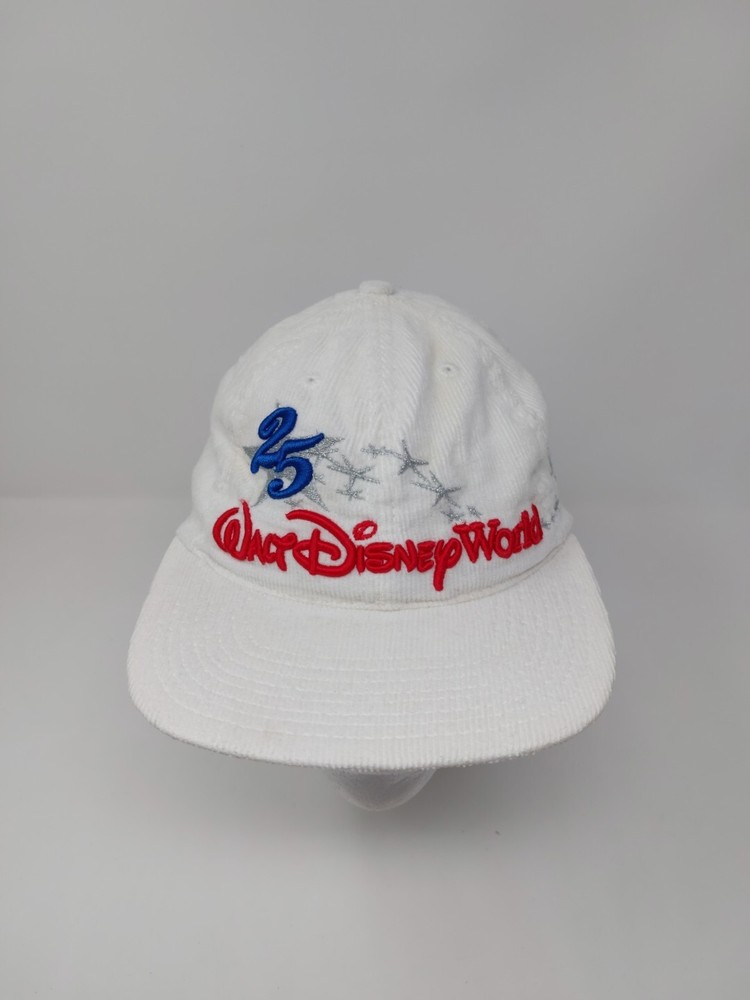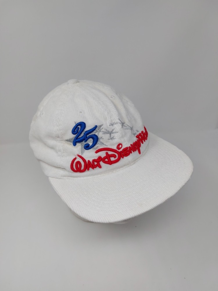 Pre-owned Made In USA Goofys Hat Company Walt Disney World 25th Anniversary Corduroy Strap back hat. Hat shows signs of use and some staining. Please view the images and if you need more or have any questions just ask. Thanks for looking.