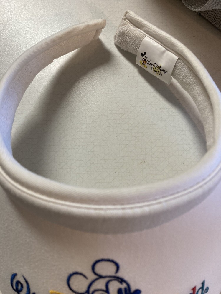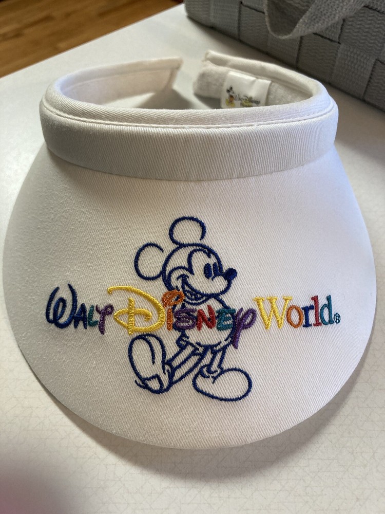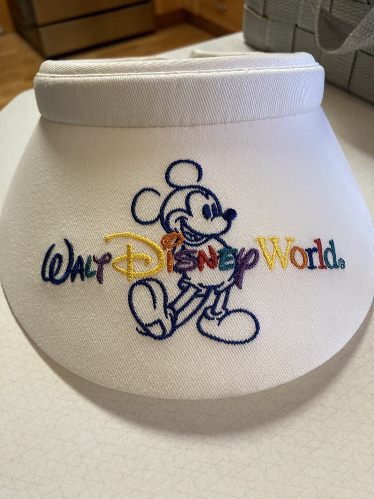 This vintage Walt Disney World women's visor is a colorful addition to any Disney fan's collection. The visor features Mickey Mouse on the front and a rainbow and white design. It is perfect for adults to wear on sunny Disney trips or as a fun accessory to complete a Disney-inspired outfit. The visor is made with high-quality materials and the Disney branding ensures authenticity. It is a must-have for any Disney fan who wants to show off their love for the franchise. Add this unique and vibrant visor to your collection today. Retired! 22