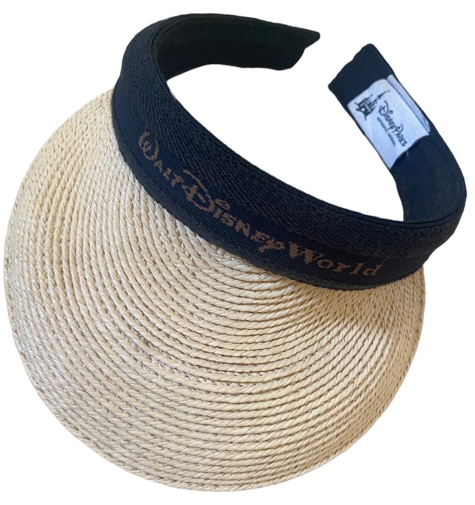 Vtg Walt Disney World Parks Hat Visor Raffia Natural Tan Black Womens Excellent